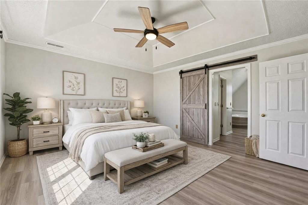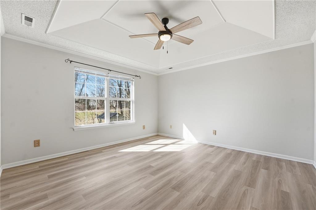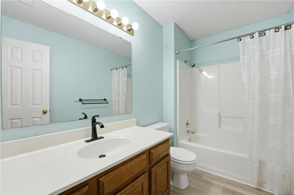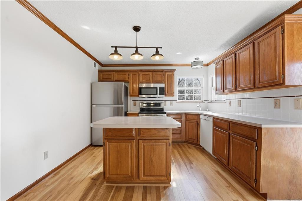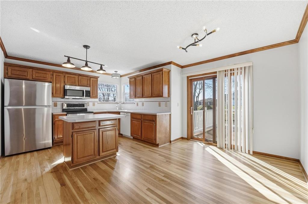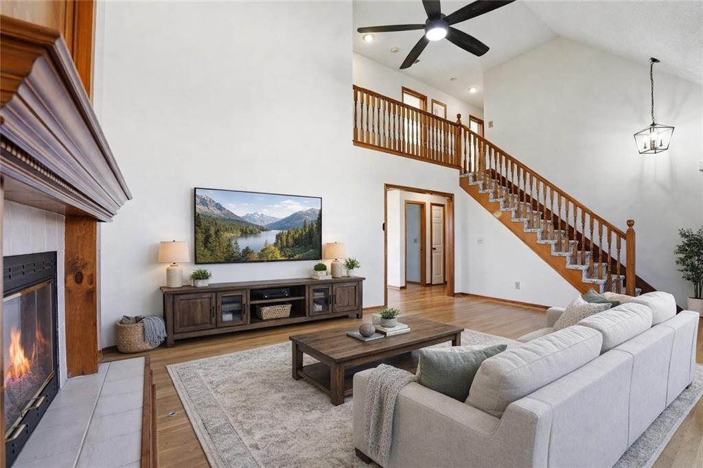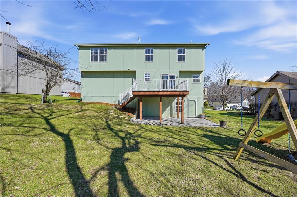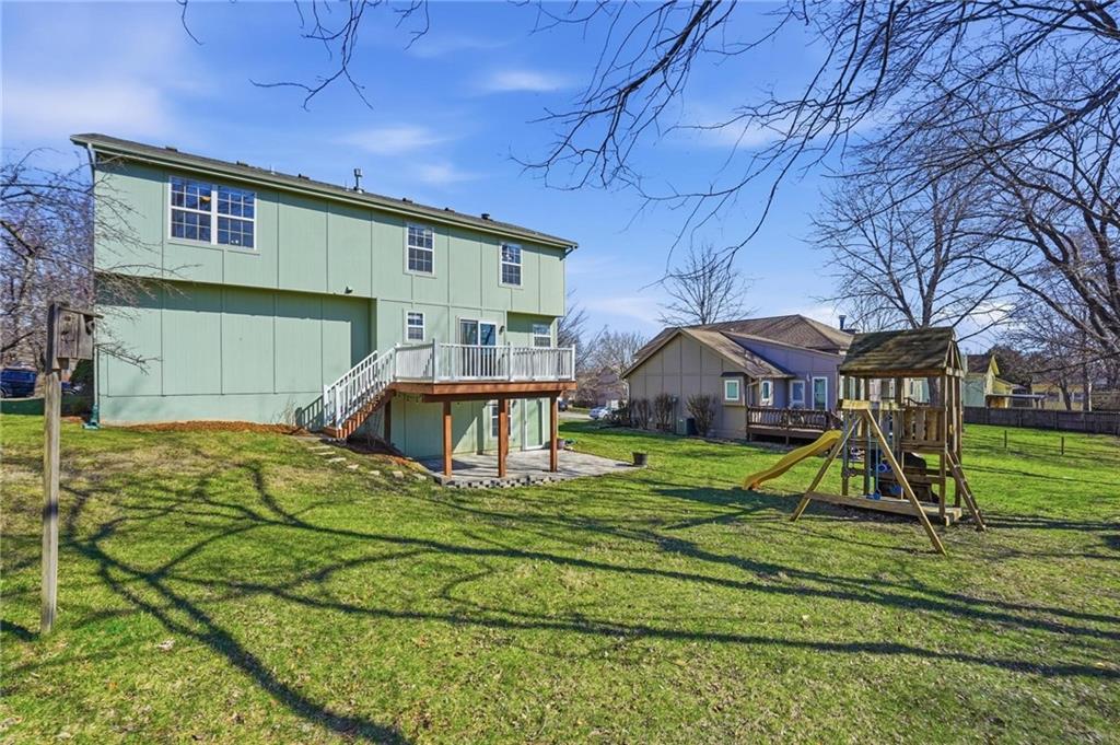 Welcome to this 4 bedroom, 3.1 bath home located in the highly sought after Park Hill School District with Hardie Board siding! The main level offers warm wood flooring and a bright, open living room with vaulted ceilings, ceiling fan, and cozy fireplace that creates a great space to relax or gather with friends. The dining area flows right out to the deck, making indoor and outdoor entertaining easy. The kitchen features wood floors, an island, and an eat in space that keeps everyone connected while cooking or hosting. Step outside to enjoy the composite deck with updated railings, a great spot for morning coffee or evening hangouts. The primary suite includes LVP flooring, a walk in closet, tray ceiling, and a spacious en suite bath with double sinks, a jetted tub, and separate shower. Three additional bedrooms provide comfortable space for guests, work from home setups, or hobbies. The finished lower level adds even more living space with a large rec room, full bath, and flexible area perfect for movie nights, a game room, or workout space. With multiple living areas, great outdoor space, and a fantastic Park Hill location, this home is ready for its next chapter.