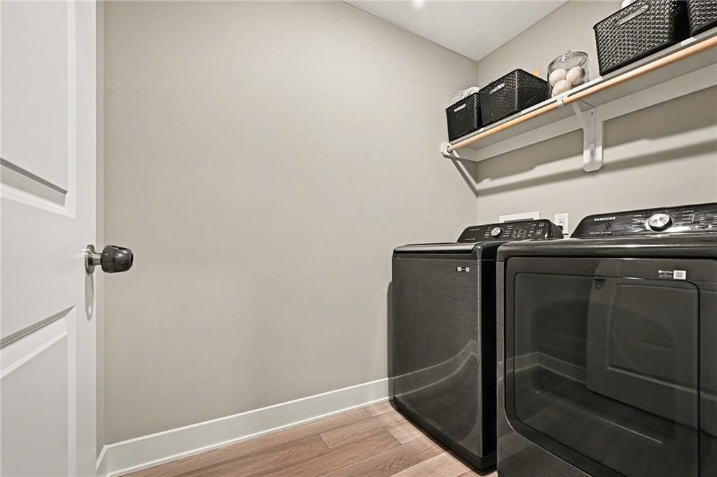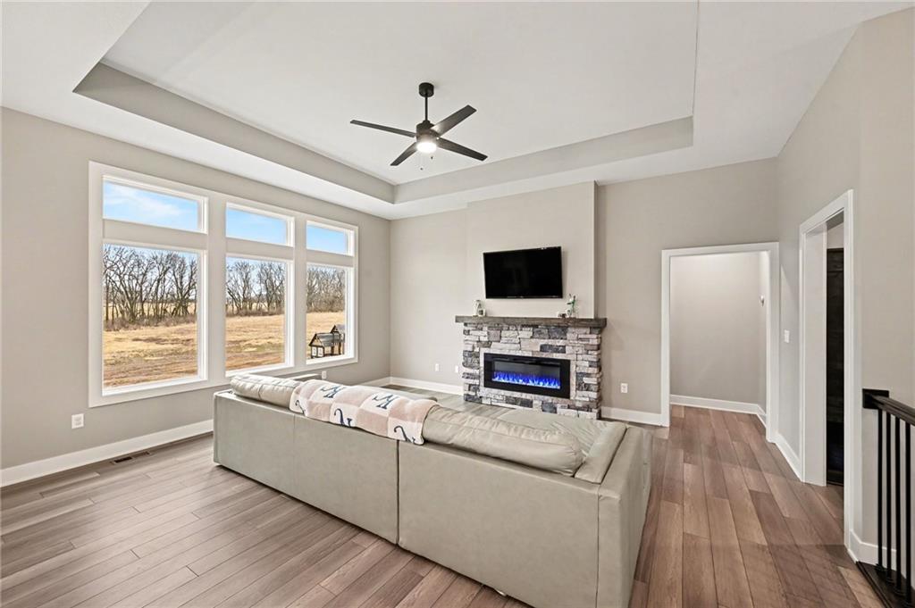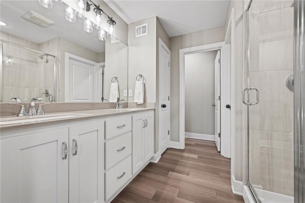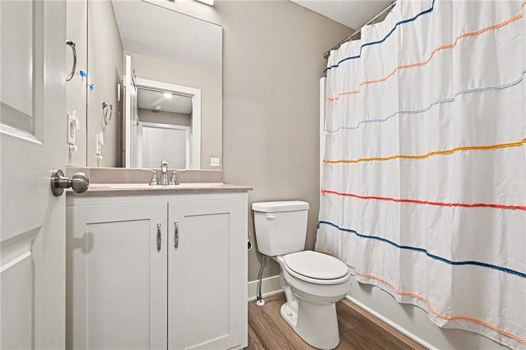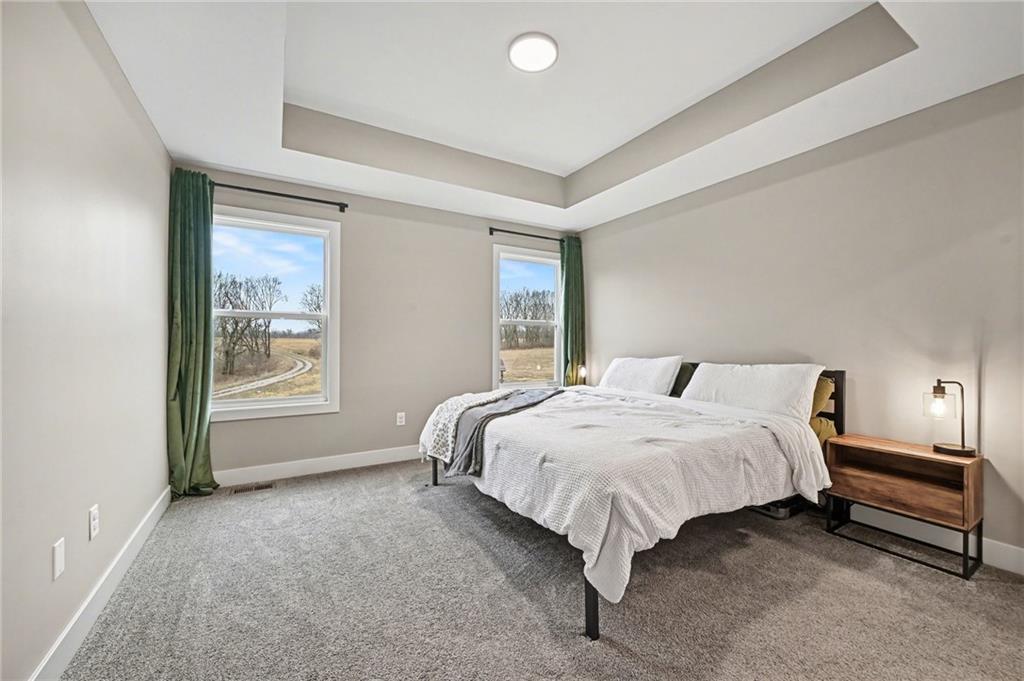 Welcome to this beautifully designed home in the desirable Woodland Creek community, where modern finishes and thoughtful spaces come together to create a home that feels both stylish and comfortable. From the moment you arrive, the home’s clean lines, stone accents, and inviting front entry create wonderful curb appeal. Step inside to discover a bright, open main level with soaring ceilings, warm living spaces, and large windows that fill the home with natural light. The heart of the home is the stunning kitchen featuring crisp white cabinetry, stainless steel appliances, a spacious island with seating, subway tile backsplash, and a walk-in pantry for added storage. The open layout flows seamlessly into the dining and living spaces, making it ideal for both everyday living and entertaining. The primary suite offers a relaxing retreat with a spacious layout, dual vanities, a large walk-in shower, and a generous walk-in closet. Additional bedrooms provide flexible space for family, guests, or a home office. Step outside to enjoy the covered deck overlooking the backyard — perfect for morning coffee, evening gatherings, or simply taking in the peaceful surroundings. The partially finished lower level provides more room to entertain in a great family room and an additional 2 bedrooms, while the fenced yard offers plenty of room to play, garden, or entertain. Located in the welcoming Woodland Creek neighborhood with convenient access to nearby amenities, this home combines modern design, functional living spaces, and a fantastic location. Come experience it for yourself.