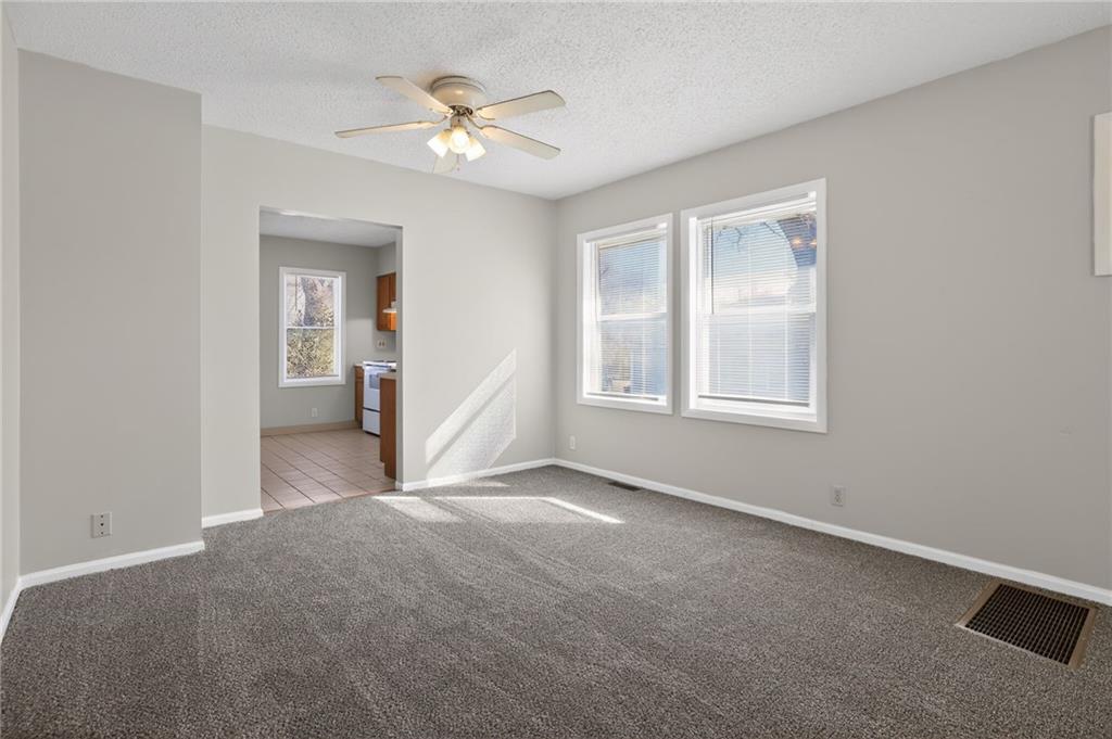 Charming 2-bedroom, 1-bath bungalow in the heart of Raytown offering loads of curb appeal and a warm, inviting feel! Step inside to find neutral colors and abundant natural light that create a bright and airy atmosphere throughout. The dining room flows seamlessly into the living room, giving the home a spacious, open feel perfect for everyday living and entertaining. Both bedrooms feature comfortable carpeting and ceiling fans for added comfort. The kitchen offers convenient access to a large laundry room, providing extra storage and functionality. Enjoy outdoor living on the wood deck overlooking a large lot just shy of 1 acre — plenty of space for gardening, pets, play, or future possibilities. The wood privacy fence adds seclusion and charm, making the backyard your own private retreat. This delightful bungalow combines character, comfort, and space — don’t miss your opportunity to call it home!
