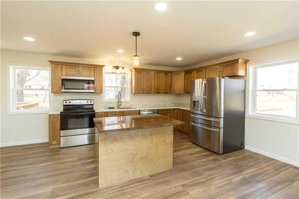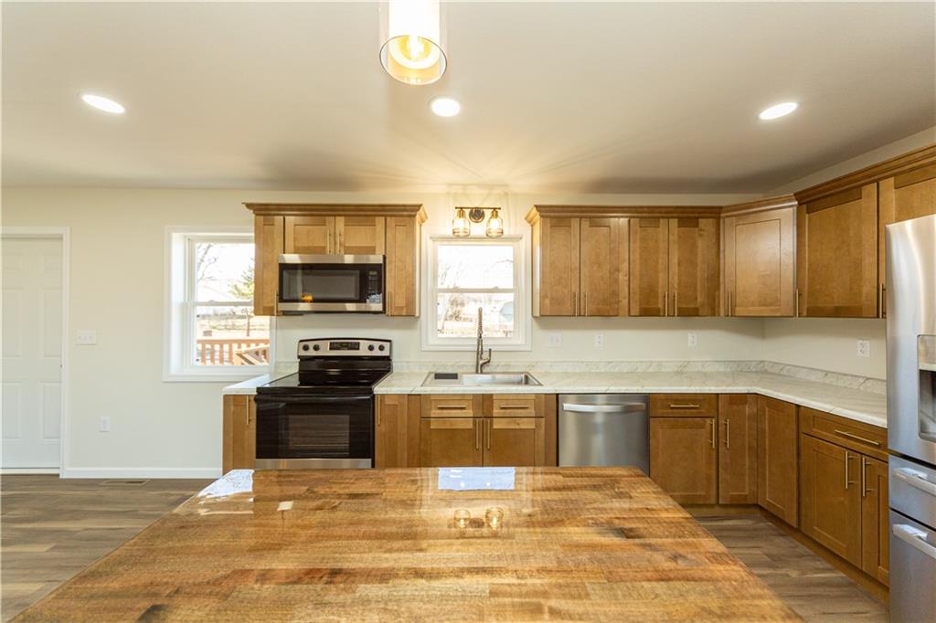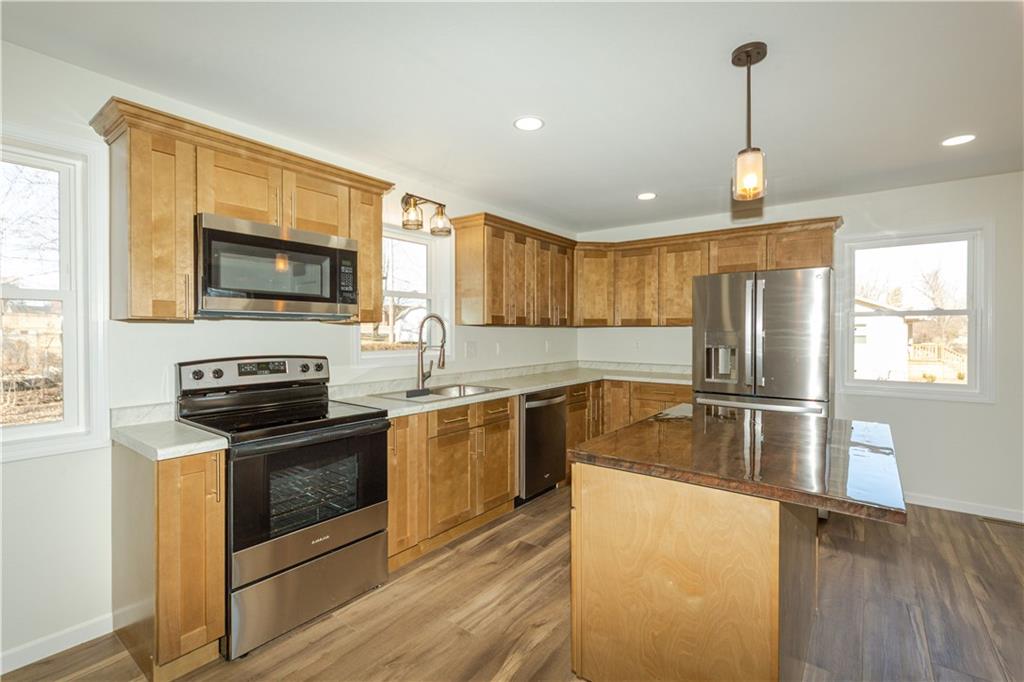 If you've been waiting for a home where EVERYTHING is new... this is it! This fully remodeled home has been updated from top to bottom and is completely move-in ready. Inside you’ll love the open kitchen, living, and dining layout, featuring an island with seating and all appliances included. The main level offers 2 bedrooms and a full bathroom, while the finished basement adds 2 non-conforming bedrooms, a 2nd bathroom, and a spacious family room—plus extra room for an office, play area, or hobbies. The basement also includes painted concrete floors for a modern, durable finish and a handy storage area. Step outside and enjoy the front porch, spacious back deck, and good-sized yard, all tucked away on a quiet dead-end street. Additional highlights include Smart LP siding, a new roof, new tankless water heater, new package HVAC system and a gravel driveway. Everything in this home is brand new—just move in and enjoy!