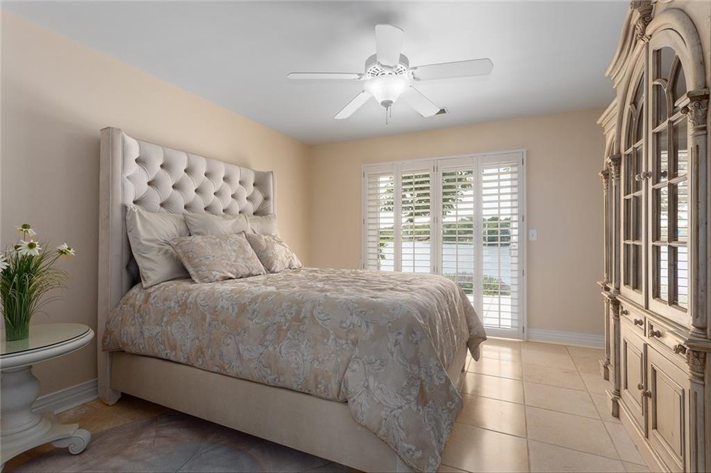 Tucked away on one of the most coveted lakefront lots in the Northland, this one-of-a-kind, custom-built home was thoughtfully designed by an interior designer to take full advantage of its breathtaking views. Nearly every room in this meticulously maintained residence has water views. Step into the grand foyer where soaring columns and faux marble accents set an elegant tone. From there, a second entry welcomes you with a barrel-vaulted, hand-painted ceiling and sweeping lake views that draw you further into the heart of the home. The French country-inspired kitchen is a dream for any entertainer or home chef, featuring a hand-selected marble island, custom cabinetry, a cozy stone fireplace, built-in entertainment center and desk, and an all-glass breakfast room with arched windows overlooking the lush, landscaped yard with multiple water features. The hearth room flows into a spacious living room with a see-through fireplace, a wall of glass framed with plantation shutters. The primary suite is a peaceful retreat with patio access, high ceilings, custom built-ins, upgraded carpet, and plantation shutters. The ensuite bath offers a spa-like experience with a dome ceiling over the soaking tub, walk-in shower, and dual vanities. A second bedroom also has direct patio access and features elegant travertine floors. Recently added second living quarters include a full gourmet kitchen, living area with built-ins, breakfast nook, second master suite with luxurious bath, large walk-in closet, and even a second laundry room—perfect for guests, in-laws, an adult child, or anyone looking for privacy and independence. The space also features its own private entrance. Additional highlights include a spacious three-car garage with high-end epoxy floors, a private dock with a pontoon boat included, full irrigation system, expansive patio and deck spanning the length of the home, and professional landscaping throughout. This is more than just a home—it's a lifestyle.