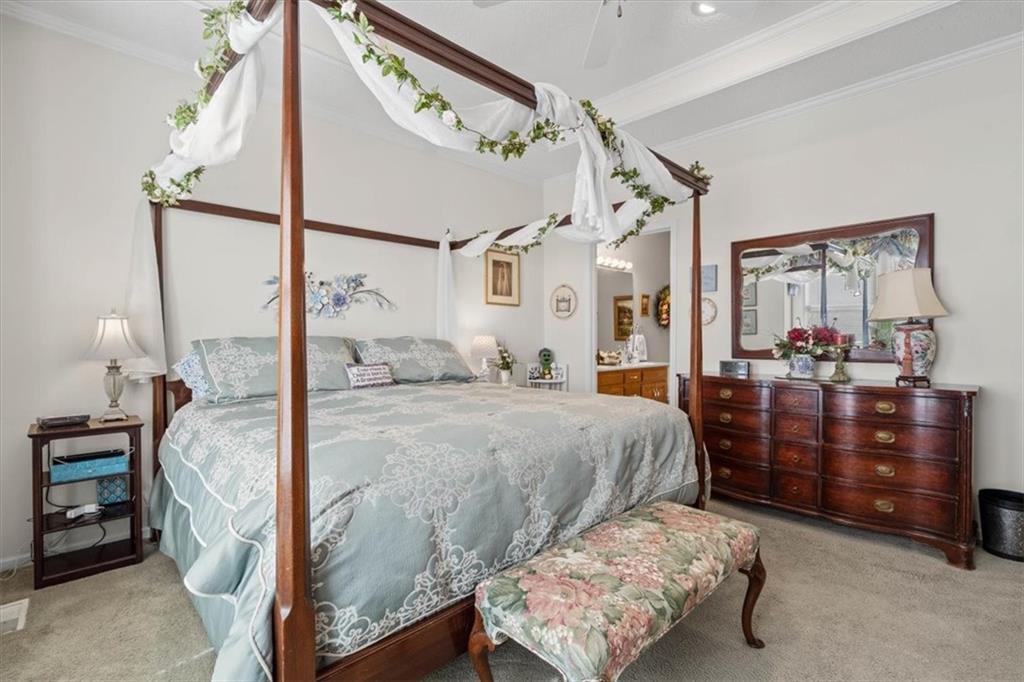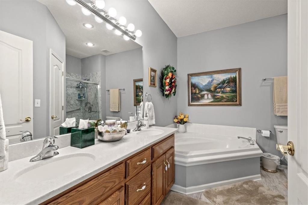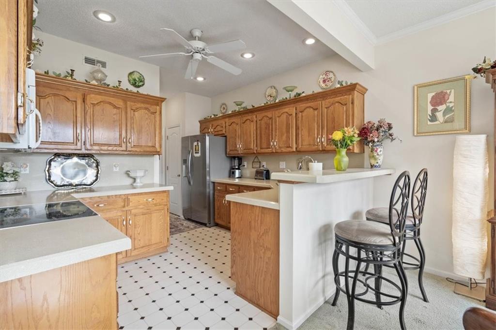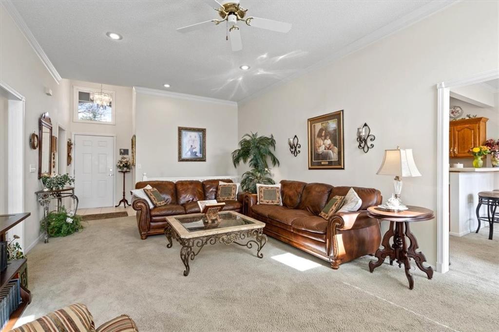 This beautifully maintained ranch in Whispering Meadows offers low maintenance living with convenience to restaurants, shopping, Waterfall Park, and much more! The inviting open floor plan includes a comfortable living room with vaulted ceilings and a gas fireplace as well as the well-appointed kitchen with granite counters and backsplash, custom stained cabinets, and a dining area. The home has 2 large bedrooms which includes the primary bedroom complete with en suite bathroom, walk-in closet, and charming window seat. The unfinished basement provides limitless opportunities from storage to a rec space and more. Whispering Meadows offers a true community environment with a clubhouse, newly renovated pool, and walking trails, plus a packed social calendar with events for a variety of interests, perfect for getting to know your new neighbors!