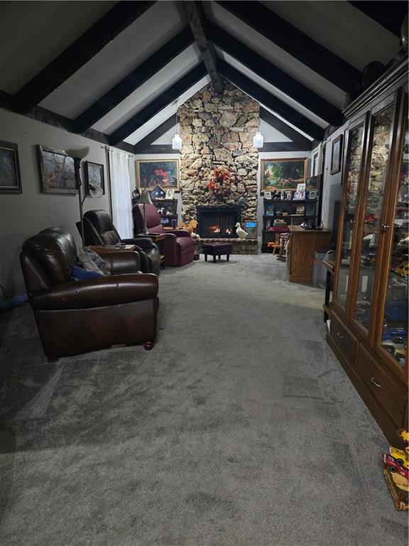 Experience the perfect blend of rustic charm and modern efficiency in this 2,047 sq. ft. home. Situated on a sprawling 32,234 sq. ft. lot, this property offers rare privacy and space. The heart of the home is the expansive living room, featuring soaring vaulted beam ceilings and a majestic custom stone fireplace mirrored by a matching stone feature piece. The "country-sized" kitchen is a chef’s delight, boasting a portable island, walk-in pantry, and premium appliances—including a silent 3-rack Whirlpool dishwasher and breakfast nook with tree-shaded views. The Master Suite is a true retreat with a coffered ceiling, crystal chandelier, and private 3/4 bath with dual shower heads. Two additional oversized bedrooms share a luxury hall bath equipped with a 72" Kohler deep soaking tub. Below, the full walk-out basement offers a massive footprint for future equity, already framed for a non-conforming 4th bedroom and plumbed for a bar and additional bathroom. Mechanical & Exterior Highlights: HVAC: 95% efficient 2-stage system (5 years old) with sanitized ductwork. Windows: Renewal by Anderson (front) and newer double-pane vinyl (rear). Efficiency: Hybrid high-output water heater and LED lighting throughout. Protection: Leaf Filter gutter system with lifetime warranty and a roof inspected in "Good" condition. Extras: Formal dining room, large laundry/mudroom, 2-car garage, and two backyard sheds. Move in with total peace of mind knowing the "heavy lifting"—from the high-efficiency mechanicals to the plumbing stops—has already been handled. This private oasis is designed for those who love to gather, offering space, comfort, and timeless style.