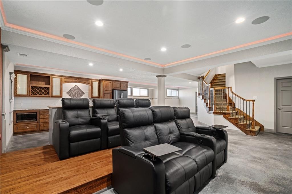 Welcome to your private retreat on 3 acres! This beautiful 1.5-story home features vaulted ceilings, 5 bedrooms, 4.5 bathrooms. The kitchen has been updated with fresh quartz countertops, and the primary suite opens to the four seasons room, perfect for relaxing year-round. The finished basement is set up for entertaining with a theater room and a bar, making it a great space for gatherings, or movie nights. Step outside to enjoy your own backyard oasis featuring a large heated swimming pool and hot tub, all surrounded by the privacy of your 3-acre lot. A 3-car garage completes the home with plenty of space for vehicles and storage. Space, privacy, and great entertaining areas. This one is a must see! The theater seating, basement TV, and downstairs barstools are negotiable and available for purchase.