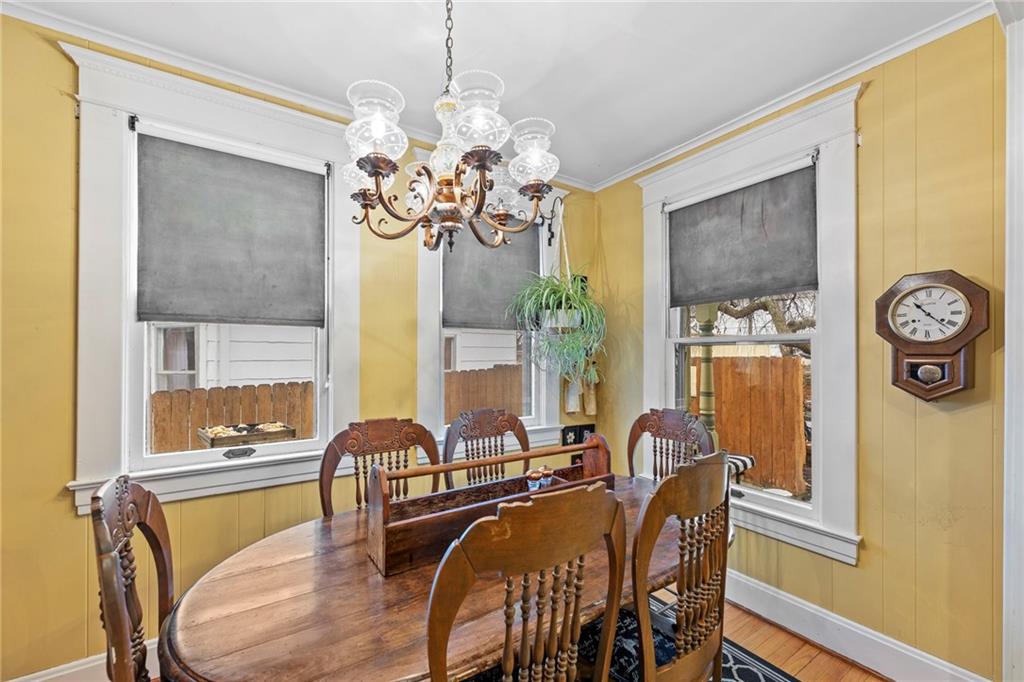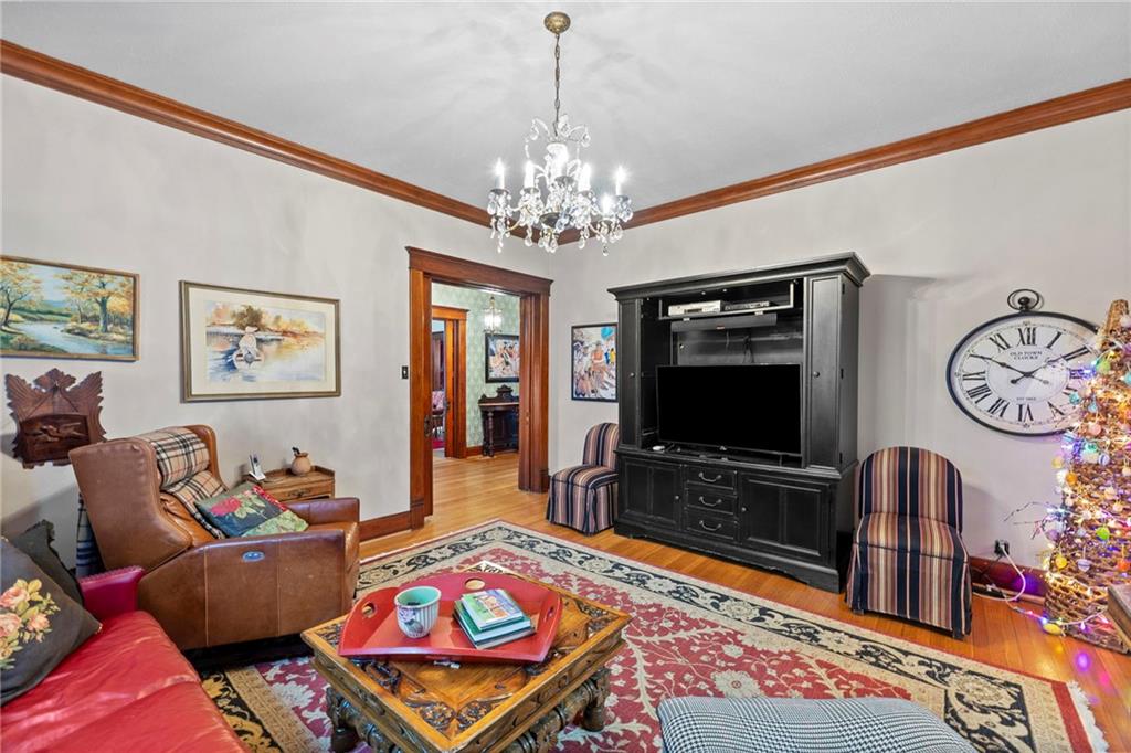 Expect to be impressed as you step into the timeless elegance of the "Washburn" house, a rare residence that masterfully blends old-world charm with sophisticated modern comfort. Meticulously updated while preserving its historic integrity, this home showcases authentic craftsmanship through unique chandeliers, ornate trim, wide crown and baseboard moldings, and original solid wood interior doors. The architectural character shines in the 3 sets of beautiful pocket doors and the lead glass windows that grace the front of the home, while modern peace of mind is provided by newer windows throughout the rest of the house and a central heat and air system installed within the last 5 years. A large, covered front porch invites you into a grand entry room, flanked by an elegant living room featuring an original fireplace and a lovely, sunlit parlor. The gourmet kitchen is a chef's dream, boasting cherry cabinetry, a quartz island, and high-end appliances including a gas stove and a new convection oven with air-frying capabilities. Two butler doors offer seamless flow into the massive formal dining room, perfect for hosting memorable gatherings. The main level features gorgeous hardwood floors and houses 3 spacious bedrooms—including a primary suite —all equipped with walk-in cedar closets and accompanied by 2 full. bathrooms. Upstairs you will find a fourth bedroom, a third bathroom, a cozy den, and a sprawling unfinished area brimming with potential for additional living space. With laundry hookups available on both the main floor and the basement, a detached garage with a finished room above, and a courtyard-style yard ideal for summer barbecues, this property is truly one of a kind. Located within walking distance of the historic Paola square, this home is ready for its next chapter—schedule your private tour today!
