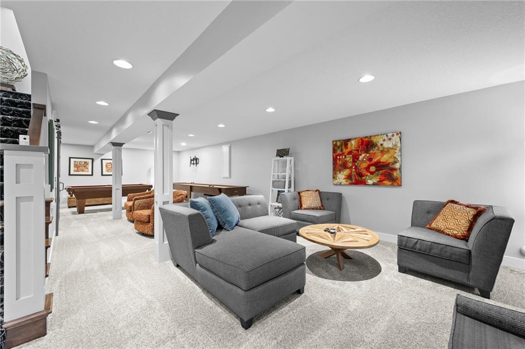 Welcome to 318 Lakeside Drive nestled just off the Liberty Triangle, this delightful neighborhood boasts lush trees, serene ponds, a park like setting, and maintenance free living! Very convenient for shopping, dining out and all your daily needs. This exceptional property is ready for new owners and features convenient main level living with an open floorpan, fully remodeled and professionally designed with designer touches everywhere! Modernized kitchen with the quartzite island and walnut table top with seating for eight perfect for entertaining all your guests. Upgraded newer kitchen appliances, farm sink, Blanco prep sink, custom cabinets with storage galore, soft close drawers and doors, and a floor to ceiling pantry. The kitchen opens up to the living room with a delightful gas fireplace. The owners suite is large and inviting and features updated bath with tiled walk in shower, double vanity and a walk in closet. This also opens to the outside deck. Perfect for those morning cups of coffee! There is also another bedroom off the front of the home with a large closet that could also double as an office/formal dining room as well. The second bath also features a nice skylight and an elegant tiled walk in shower. Main floor laundry and also a second deck off the kitchen perfect for the grill! The lower level features a second gas fireplace, large family room, and a third bedroom and ensuite bath perfect for guests. There is also an ample storage room with epoxy floor and more storage under the stairwell. The garage also has and epoxy floor and the decks are made of composite material. Newer high efficiency HVAC system installed. This is a must see! Call to schedule a tour today!