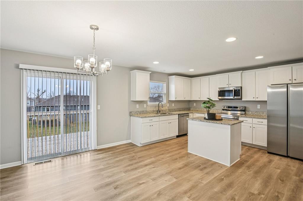 SELLER INCENTIVES OFFERED. PLEASE INQUIRE. Now available- This 4BR, 3BA, 2 car garage split level home is beautifully designed, combining modern style, functionality and warmth. Recently built in 2023, the Westridge floor plan features a welcoming naturally bright entry landing that effortlessly guides you to the upper and lower levels, offering a thoughtfully designed layout with comfortable separation of living spaces. The Great Room features a spacious sitting area that is offset by a mantled electric fireplace. The chef’s kitchen is a highly functional, spacious area offering white shaker cabinetry, granite countertops and smart stainless steel appliances. You will also find an elevated deck with stairs leading to the lower level. Scratch resistant luxury hard surface floors flow seamlessly through the home for an added sophisticated touch. The luxurious primary suite boasts a box vault ceiling, walk-in closet, with an en suite double vanity and spa-like walk-in shower with elegant finishes. Two additional bedrooms, perfect for an office, sleeping quarters or personal gym and a full bath all on the main level. The finished basement extends your living space with a secondary Great Room that enhances the home's flexibility for entertaining, a cozy den or game room. The lower level is home to a coat closet, fourth bedroom with double door closet, full bath and laundry. This home is nestled in the Eagle Ridge neighborhood minutes from shopping, dining with quick access to I-70 for easy commuting ad located in the award winning Grain Valley school district. Part of a well-maintained HOA community with minimal fees.