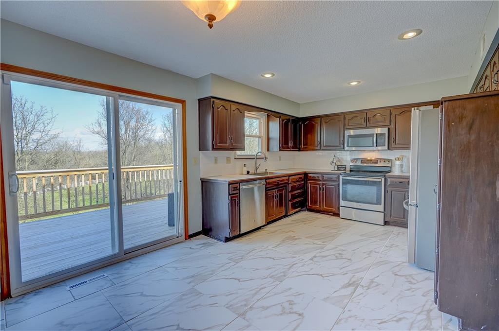 Welcome to 2501 NE Dale Hunter Trail! This 3 bedroom, 3 full bath home offers multiple living spaces and a layout that gives everyone room to spread out. Step inside from the covered front porch and you are greeted by soaring ceilings, a cozy fireplace, and a bay window that fills the main living area with natural light. The space flows comfortably into the dining area and kitchen. The kitchen features ceramic tile floors, stainless steel appliances that stay with the home, and sliding door access to the two tiered deck. Upstairs you will find all three bedrooms, including the primary suite with an en suite bathroom featuring double vanities and two closets. The hall bathroom is spacious and includes the laundry area conveniently tucked inside. Just a few steps down is the second living area with large windows that bring in great natural light. It works well as a family room, office space, or flexible living area depending on your needs. The lowest level offers a walkout basement with a third full bathroom, a third living area, and additional unfinished storage space. Outdoor living is just as enjoyable with a two tiered deck, patio space, and a large yard that backs to green space with no immediate neighbor behind you. All of this is tucked into a quiet cul de sac lot. If you have been looking for a home with space, flexibility, and a great Lee’s Summit location, this one is worth a look.