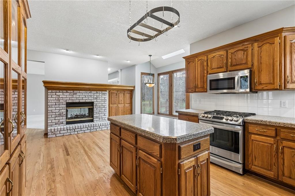 Step into this lovingly maintained, one-owner retreat in the heart of the Hills of Monticello. This traditional two-story home offers three levels of space designed for real life, starting with a main floor that balances tradition & flexibility. Host holiday meals in the formal dining room or transform the flex space into a cozy reading nook, a dedicated playroom for the kids, or a quiet home office. The heart of the home is the great room, where 5 floor-to-ceiling windows frame peaceful views of the backyard. A cozy see-through fireplace connects this space to the hearth room & an updated chef’s kitchen, complete with granite counters, a five-burner gas range, & a breakfast area that opens directly to the patio—perfect for summer BBQs. Upstairs, space is never an issue with 4 generous bedrooms. Guests will love their private suite, while the kids can enjoy the convenience of a Hollywood bath. The true showstopper is the 26x22 primary sanctuary, featuring 13-foot soaring ceilings & a spa-like bath with 2 rainfall showerheads, a jetted tub, and a double-sided fireplace for ultimate relaxation. Lower-level living gets an upgrade with a finished walk-out basement featuring a family room and bar. Step outside to your private oasis: a black-iron-fenced backyard complete with a tranquil waterfall, pond & gazebo—imagine the summer evenings here! Zoned HVAC keeps all levels comfortable. New Roof! Located on a quiet corner lot with a 3 car garage, you’ll enjoy the safety of a one-way-in neighborhood with a pool & playground & a community calendar full of homeowner activities. Best of all, you can walk the kids to school at English Landing, Lakeview or St. Therese. This property is located in unincorporated Platte County, and residents pay no E-tax. Traveling for business or pleasure? Your commute to the Airport is less than 15 minutes. Quick access to Downtown Parkville, Burlington Creek & Zona Rosa for all of your shopping, amenities & community activities.