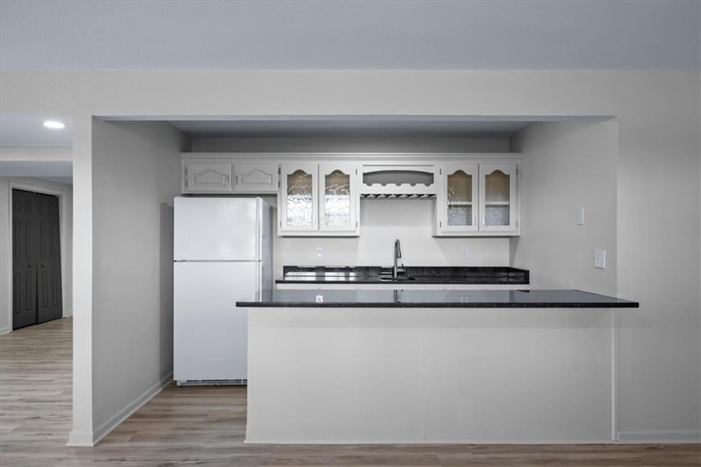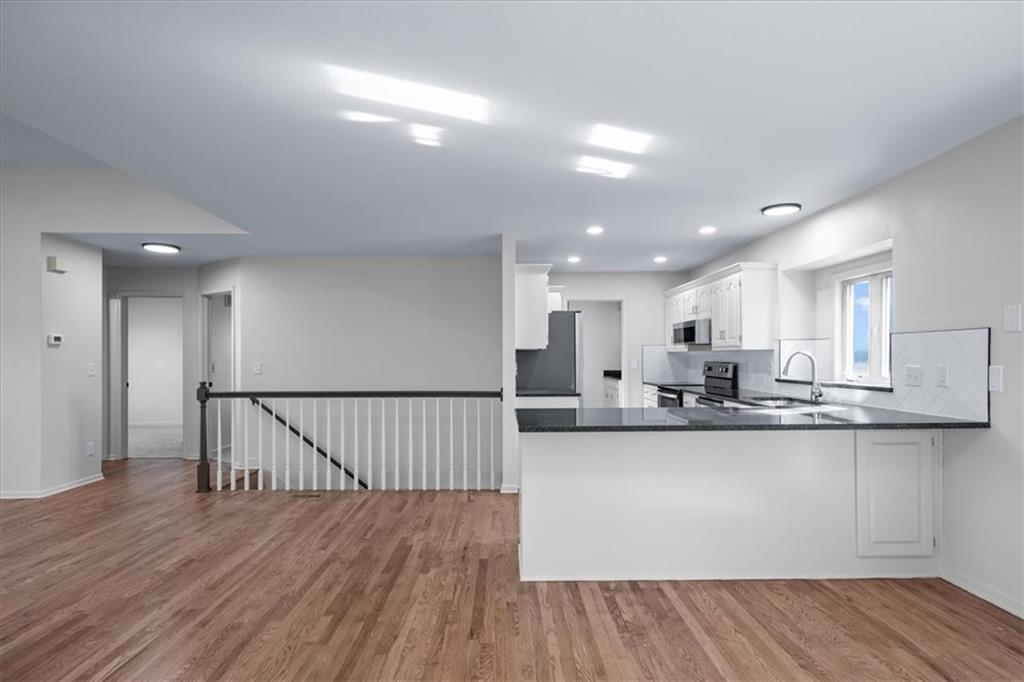 Discover peaceful country living on 5.06 m/l private acres in the desirable Raymore-Peculiar School District! This fully updated 3-bedroom, 3-bath ranch offers an inviting open floor plan with soaring ceilings in the welcoming Great Room, complete with a cozy fireplace and elegant built-in cabinetry. Gleaming refinished hardwood floors flow seamlessly through the Great Room, kitchen, and dining area. The refreshed kitchen shines with brand-new countertops and stylish backsplash, while all bathrooms feature modern updates. Fresh interior and exterior paint throughout, plus new carpet in living spaces, creates a bright, move-in-ready feel. Step outside to relax on the expansive covered deck or the brand-new patio—perfect for enjoying sunsets over your expansive, serene acreage. A shared pond adds to the tranquil setting. The walkout lower level impresses with a finished family room featuring a wet bar, a versatile office (or non-conforming bedroom), and easy access to the outdoors. Additional highlights include an epoxied garage floor for a clean, durable finish. Recent updates throughout make this turnkey ranch ideal for those seeking space, privacy, and modern comfort on acreage. Embrace the lifestyle you've been dreaming of—schedule your tour today! 40ft driveway easement already in place. Buyer & Buyer's Agent to verify all information including square footage, zoning, taxes & room sizes during the Inspection Period. Agent/Owner