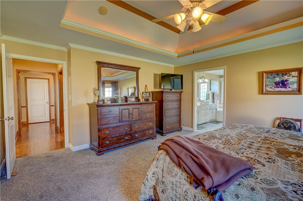 Looking for lake living? Nestled in the highly sought-after Raintree Lake community, this well-maintained home offers over 3,000 square feet of living space, combining comfort, character, and recent updates. With a new roof, fresh exterior paint, and a newly added covered deck, the exterior provides both peace of mind and the perfect setting for outdoor living. A private backyard gate offers direct access to neighborhood walking trails and a nearby community pond. Inside, you’ll find hardwood floors, custom built-ins, and rich wood accents that add warmth and timeless appeal. Vaulted ceilings and an open, inviting layout create a bright and spacious feel, ideal for both everyday living and entertaining. The home features four bedrooms and four full bathrooms, offering flexibility and room to spread out. A dedicated office with French doors provides an ideal work-from-home setup and can easily function as a fifth bedroom, complete with a spacious walk-in closet and direct access to the backyard. The primary suite offers a relaxing retreat with dual vanities, a jetted tub, and generous closet space. Throughout the home, you’ll appreciate the abundance of storage and well-sized closets designed for practical living. Located in Raintree Lake, this home offers not just a place to live, but a lifestyle—complete with community amenities, scenic surroundings, and everyday convenience right outside your back gate.