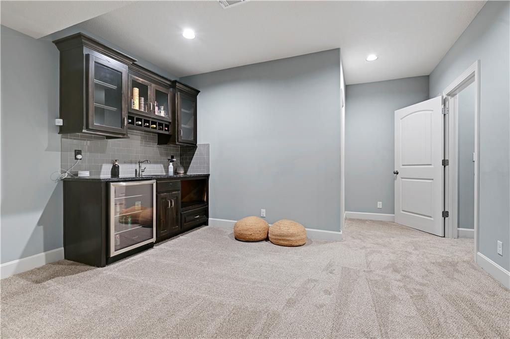 Welcome to this beautifully designed 6 bedroom/5 full bath Bickimer home. The main level features an open-concept kitchen and great room with high ceilings. The kitchen is anchored by a large island with seating, pendant lighting, and a sink, along with a vented gas cooktop and walk-in pantry. Just off the kitchen is a relaxing sunroom. A flex room on the main level can easily serve as a bedroom, private office, or guest suite, depending on your needs. Upstairs you’ll find four bedrooms including the spacious primary suite, along with a conveniently located laundry room that is accessible from both the hallway and the primary bedroom. The finished lower level expands the living space even further with a sixth bedroom and bar area—perfect for entertaining. Step outside to enjoy the covered deck overlooking a large fenced-in backyard. Garage features coated epoxy floor & sub-panel ready for your EV charger. New Carpet throughout the home was installed last week.
