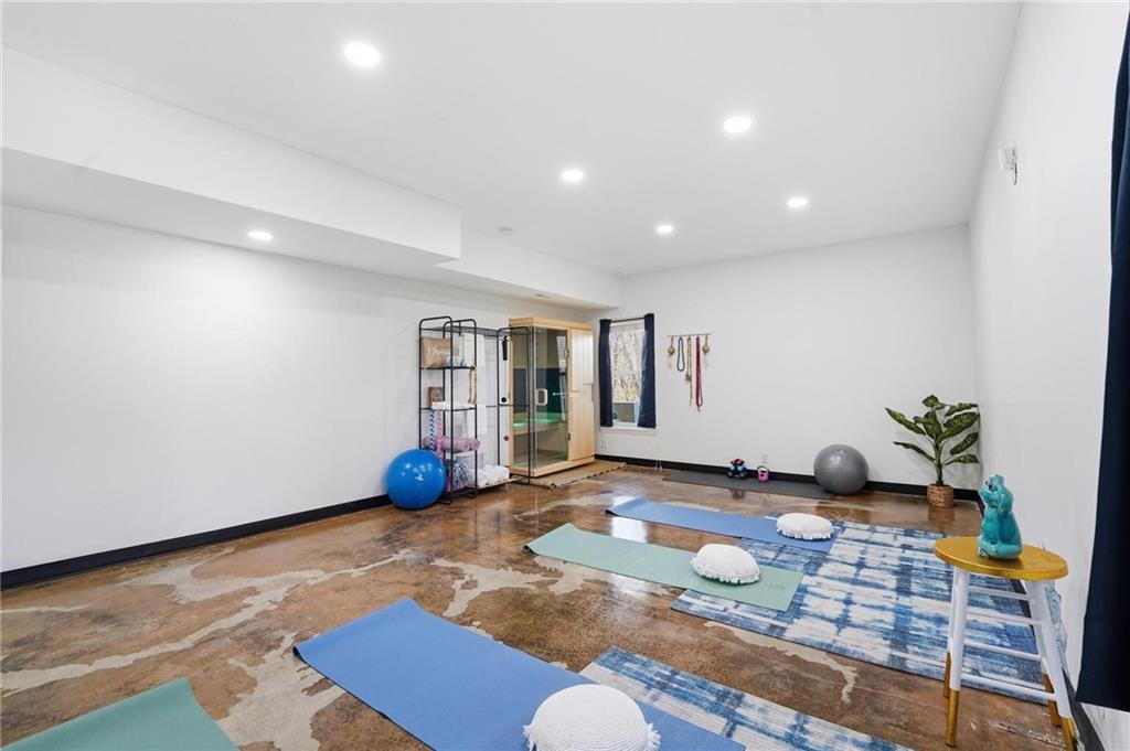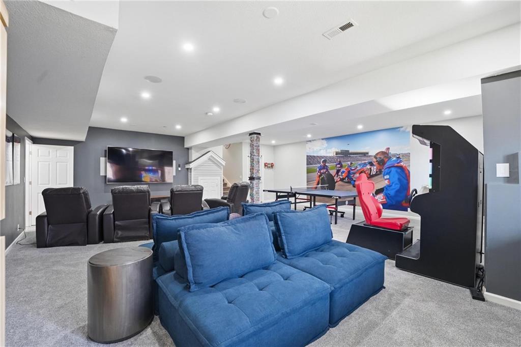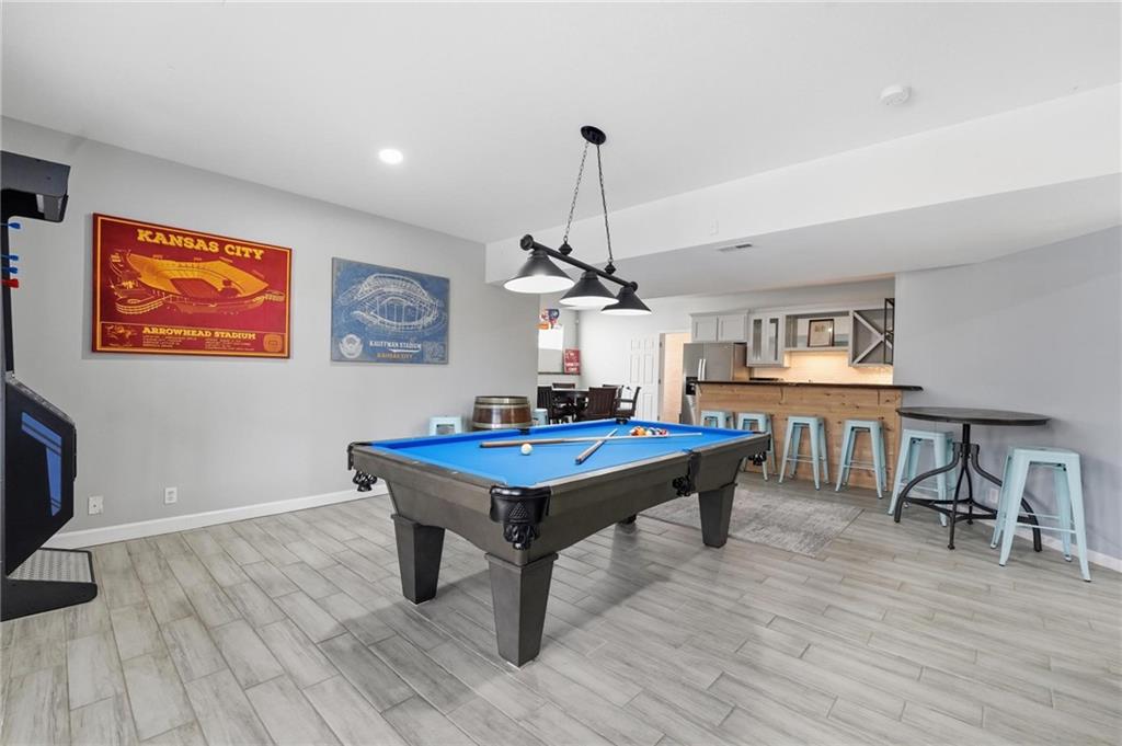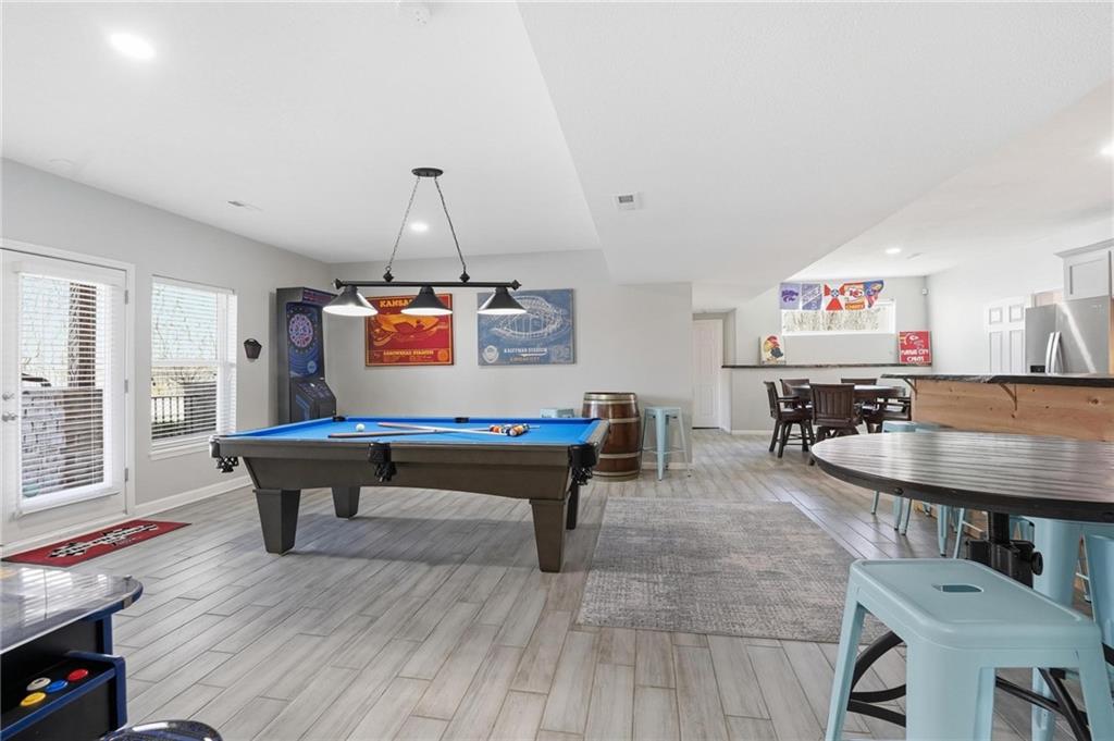 Welcome to your private slice of paradise in Piper. Tucked away at the end of a quiet cul-de-sac, this rare 1-acre walkout estate is surrounded by expansive green space, offering exceptional privacy while still benefiting from city water and city sewer—a rare combination for properties of this size. Designed for both everyday comfort and unforgettable entertaining, the home features a unique floor plan with 5 true bedrooms and 2 non-conforming in basement as well as 5.5 bathrooms. The main level includes a spacious, updated kitchen with walk-in pantry, a versatile library or office, and a luxurious primary suite plus three additional bedrooms for convenient main-floor living. Just upstairs, the bonus loft brings the fun with a Golden Tee golf game and indoor putting green, creating the perfect hangout space for friendly competition and entertaining. The walkout lower level is built for hosting with space for a fitness studio, theater area, arcade/game room, and full wet bar, along with additional bedrooms! Step outside and experience a true backyard retreat. Outdoor living shines with a wraparound porch featuring beautiful wood details, a screened-in deck with fireplace, and impressive stone and concrete craftsmanship throughout. The in-ground swimming pool, outdoor kitchen, pizza oven, and firepit create a backyard setting designed for relaxing, entertaining, and enjoying the surrounding green space. This is more than a home—it’s a lifestyle.