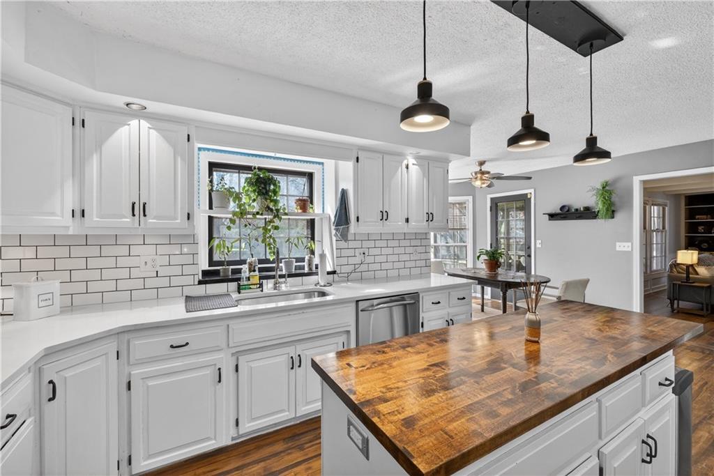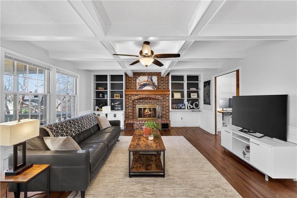 Beautifully updated 2-story in Briargrove offering over 3,500 square feet of finished living space in the highly desirable Shawnee Mission School District. This spacious 4 bedroom, 2 full and 2 half bath home blends classic charm with thoughtful updates throughout. The main level features a bright living room with fireplace flanked with built-in bookshelves, formal dining area, and a beautifully updated kitchen with center island, pantry, and newer appliances that opens to a large breakfast nook. A private main-floor office with pocket doors for added privacy provides the perfect space for working from home. Upstairs you’ll find four generously sized bedrooms including a large primary suite with updated bath featuring double vanities, soaking tub, separate shower, and a large walk-in closet. Secondary bedrooms are well-sized and share an updated hall bath. The finished lower level offers additional living space with a large recreation room, sitting area, half bath, and plenty of storage — ideal for entertaining, a media room, or play space. One of the standout features of this home is the screened-in porch overlooking the private backyard, creating the perfect spot to relax or entertain in every season. Additional highlights include a main-level laundry room, a large 15.8 x 6 mud room with built-ins, oversized 2-car garage, mature trees, and a quiet established neighborhood close to parks, shopping, restaurants, and excellent highway access. This move-in ready home offers space, updates, and an ideal Lenexa location.