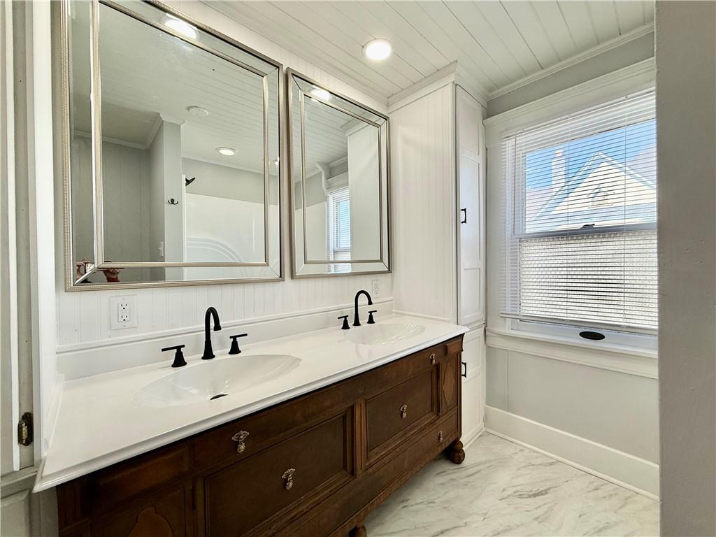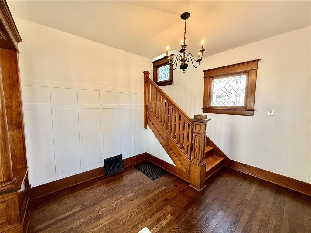 Step into this stunning nearly 3,000 sq. ft. four-bedroom home where timeless character meets thoughtful updates. From the moment you enter, you’ll notice the beyond-amazing hardwood floors and intricate original woodwork that make this home truly one of a kind. This historic home has been lovingly brought back to life so you can enjoy its remarkable craftsmanship and charm. The completely redesigned kitchen features new cabinetry, countertops, flooring, a spacious walk-in pantry, and brand-new appliances that all stay with the home. The main floor offers exceptional living space including a large family room, formal dining room, living room, and a beautiful foyer highlighted by detailed trim and architectural character. Two staircases lead to the second level, adding both convenience and historic charm. All rooms freshly painted. Upstairs you’ll find four large bedrooms, including two with an enormous walk-in closet, plus the laundry room conveniently located near the bedrooms. The updated full bathroom has been thoughtfully renovated while preserving the history and integrity. The fully finished attic provides incredible flexibility and can serve as an additional bedroom, office, game room, craft space, or playroom. This home is filled with character, space, and unique features you simply don’t find in modern homes. Don’t miss the opportunity to own this beautifully restored piece of history.