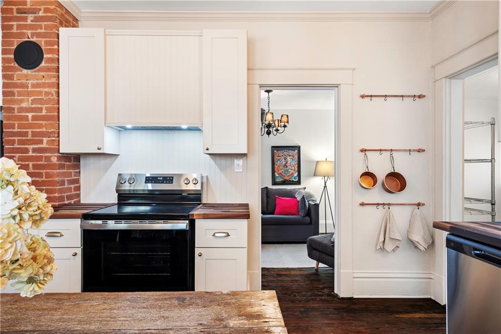Ideally located one block from the highly anticipated Historic NE Lofts, a multi-million-dollar development set to elevate the entire district. Sumptuous finishes define this beautifully renovated circa 1890 home. It offers a classic blend of historic charm and smart updates, with restored vintage elements and modern features throughout. Love the original staircase, fireplace, and rich wood floors. The thoughtfully executed redesign is an entertainers dream, with a spacious main level and seamless outdoor connection. The new custom kitchen is absolutely gorgeous featuring butcher block counters, abundant cabinetry, and a full appliance suite. Tucked neatly behind the kitchen is a vestibule with additional storage, laundry, and a darling powder room. Baths are custom designed with high style and function. The bedrooms are of generous proportion, including a main-level ensuite. Outdoor living shines with a huge wrap-around porch and generous backyard beneath a mature tree canopy. This timeless and inviting urban oasis sits just minutes from downtown and steps from essential amenities, with a walk score of 73. Updated roof, electric, plumbing, thermal windows and HVAC. This home is everything you need and nothing you don't.