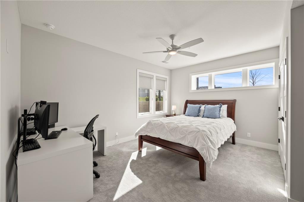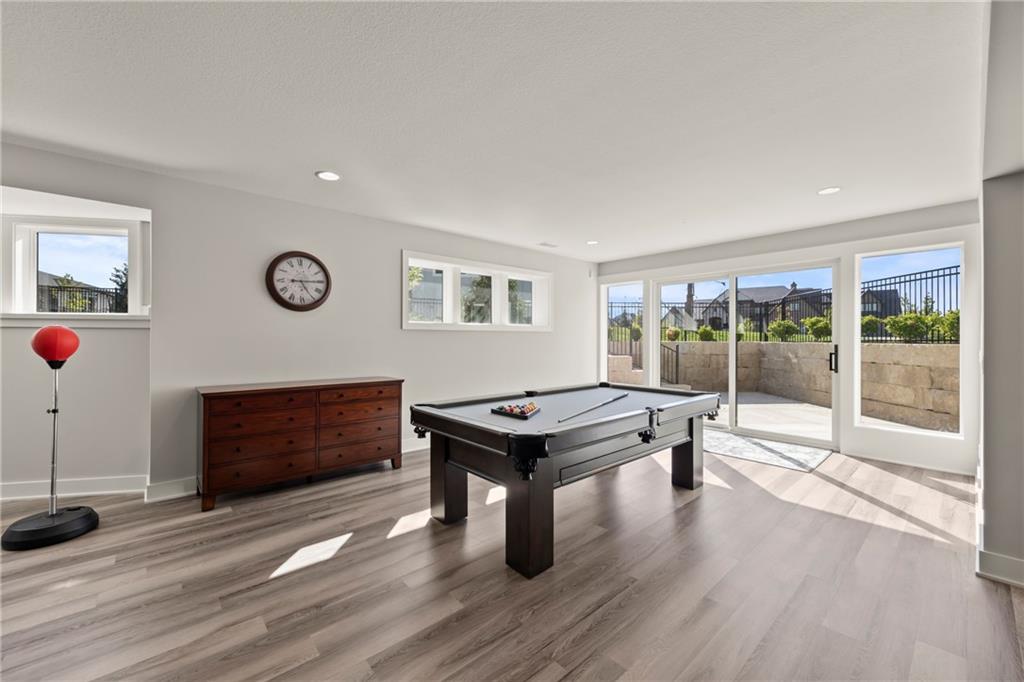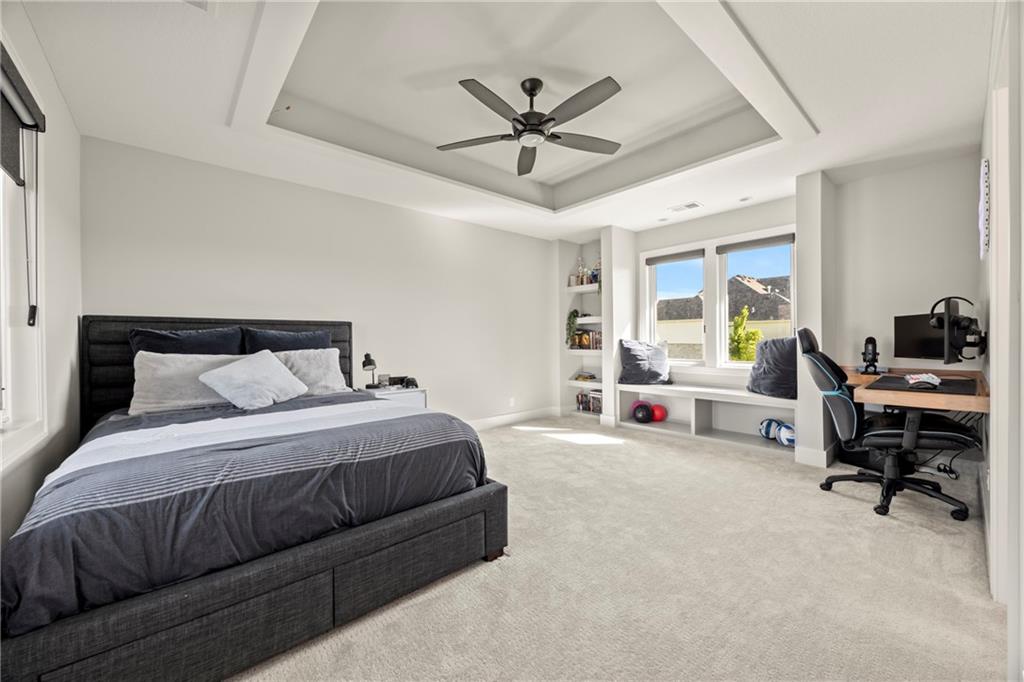 Amazing one and a half story home with a full finished walkout basement in Mills Ranch ready for quick move-in. This nearly new, 3 year old Willis Custom Built home is a stunner with a spacious vaulted main floor living space, impressive curved staircase, arched doorway to the great room, unique 2nd bar, theater room, screened in lanai sun porch, walk in double shower with freestanding tub, huge 4 car split garage with high lift doors, dog wash, pocket office, premium sound system and smart tech package. So many unexpected extras in this home around every corner. This 1.5 Story floor plan features a main floor primary suite with luxurious spa bath with with white quartz and mini tiles. Must see! Upper level offers private spaces with loft, second laundry and two premium bedrooms loaded with extra features and upgraded baths. You'll love the fully finished walkout lower level with LVT flooring, movie room, wet bar and 4th bedroom. This upscale home sits on a corner lot with a side entry four car garage and a front circle drive. Beautiful landscaped and fully fenced unique backyard allows for you to access from the main level and walkout on the side. Move right in to this amazing home located in Mills Ranch with a new neighborhood pool, and easy access to the Johnson County walking trails and quick access to Highway 69. All the luxuries of a new home are already added including premium window coverings, fenced yard, water bottle filler, built in side-by-side refrigerator and premium sound system. Why build when you can move right into this award-winning Willis Custom Home. Blue Valley School District