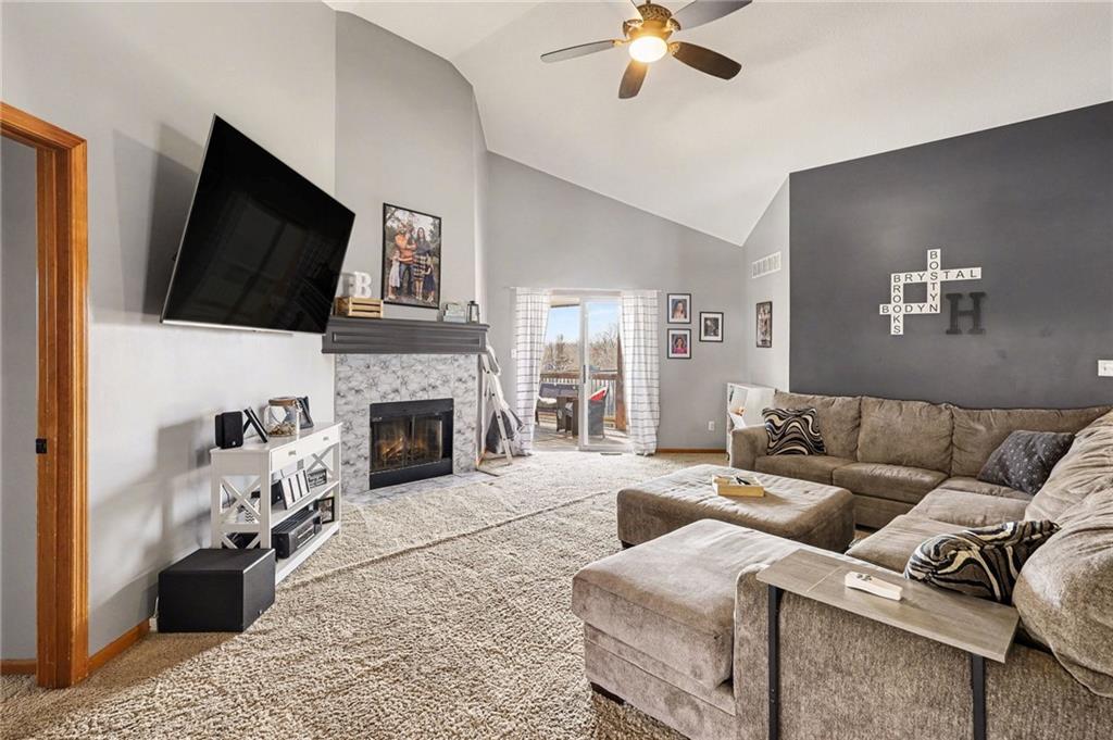 This Ridgewood Hills split-entry checks all the boxes with space where it counts! The main level feels open and airy with vaulted ceilings, a wood-burning fireplace in the living room, and a natural flow into the dining area and kitchen. The covered deck off the main level is a true outdoor living space with a ceiling fan, stairs leading down to a concrete patio and a fully fenced backyard. The main floor primary suite includes a walk-in closet and a private bath with double vanity, soaking tub, and separate shower. Two additional bedrooms and a full bath round out the main level, along with convenient main floor laundry. Downstairs, a fourth bedroom with a full bath adds flexibility for guests or a home office. The remaining basement space offers room to expand, along with plenty of storage or workshop potential. Quick access to I-470 and US-291 puts shopping, dining, and downtown Lee's Summit within easy reach, with Blue Springs schools serving the area.