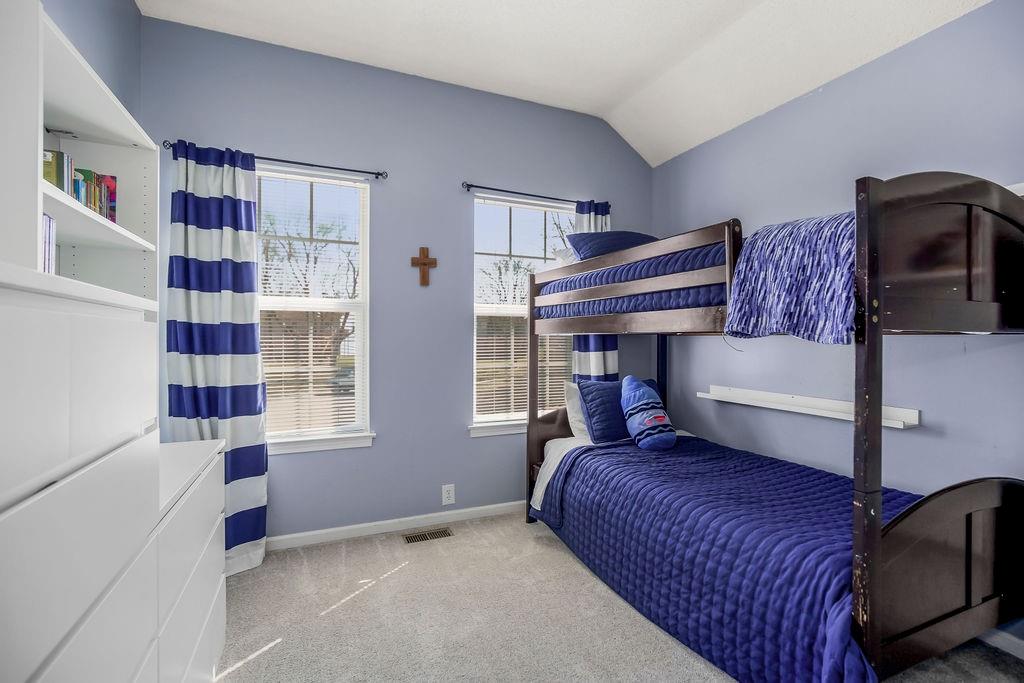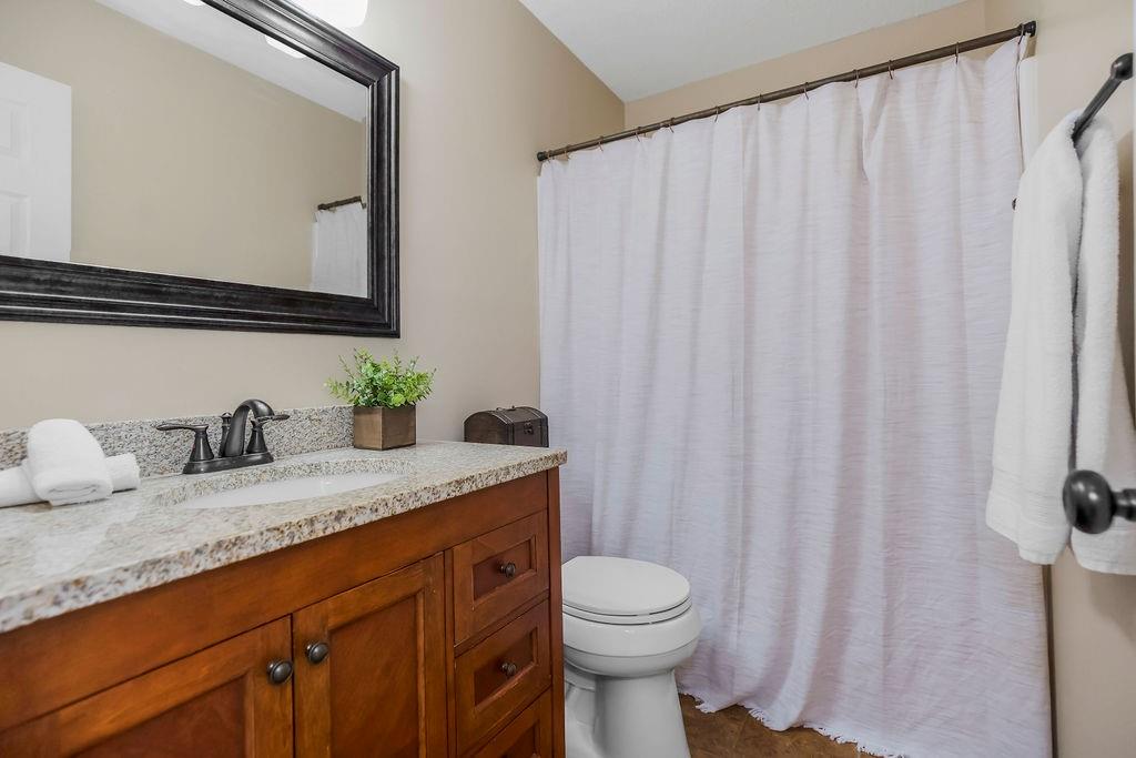 Move-in ready with space to live, entertain, and relax! The main level welcomes you with a formal living room and beautiful luxury vinyl plank flooring flowing throughout the main living areas. The kitchen is a standout with its vaulted ceiling, TONS of cabinets, and center island with quartz counter—perfect for everything from quick breakfasts to hosting friends. Downstairs, the cozy family room features a zero-emission gas log fireplace and convenient half bath, making it an ideal hangout space for movie nights or game days. The spacious primary suite offers a relaxing retreat with a walk-in shower, walk-in closet, and soaker tub. Two additional bedrooms include large closets and share a well-appointed hall bath with tile flooring and a shower-over-tub. Need more space? The finished basement includes a rec room with a walkout to the backyard—perfect for a 4th bedroom, office, or rec room. Step outside to enjoy the large deck and backyard, ideal for entertaining or relaxing on warm evenings. Nestled on a quiet cul-de-sac! The home also features durable Hardi-plank siding, and residents get to enjoy the neighborhood swimming pool—just in time for summer.
