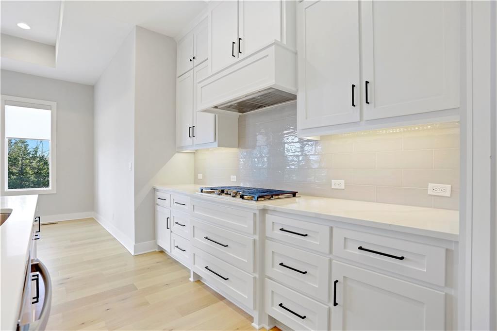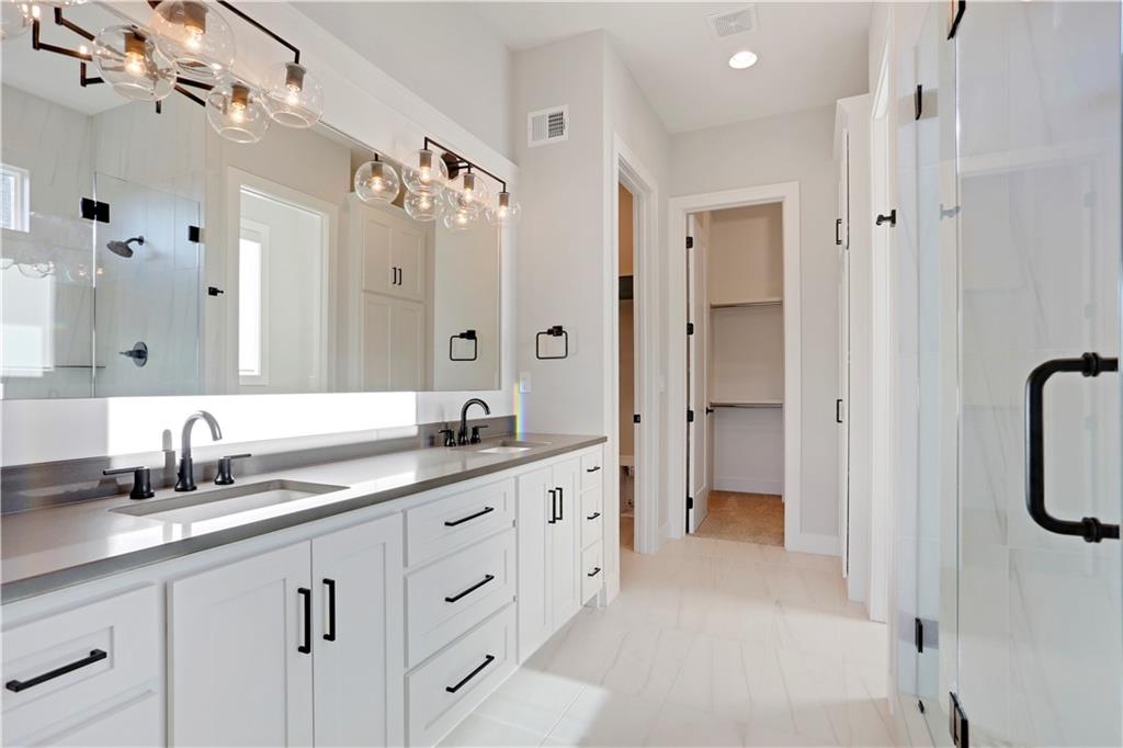 Set on a private, treed cul-de-sac lot with beautiful Hidden Lake views, this custom reverse 1.5-story by JS Robinson offers a great blend of comfort, luxury, and low-maintenance living in the Villas of Hidden Lake at Cedar Creek. The home backs to green space with sunset views and room for a pool, play area, and outdoor entertaining. Inside, large windows fill the open layout with natural light. The family room features a full stone fireplace, wood beams, and hardwood floors that carry through to the kitchen with custom cabinetry, a large island, walk-in pantry, and high-end appliances. The main level also includes the primary suite as well a second bedroom. This second bedroom has an adjacent full bath making it an ideal setup for overnight guests, multigenerational living or a home office. The walkout lower level adds two more bedrooms, another full bath, a spacious family room, wet bar, and access to a private patio surrounded by mature trees. Thoughtfully designed for everyday comfort and easy entertaining, this home offers privacy, style, and the full Cedar Creek lifestyle...golf, trails, lakes, and resort-style amenities.
