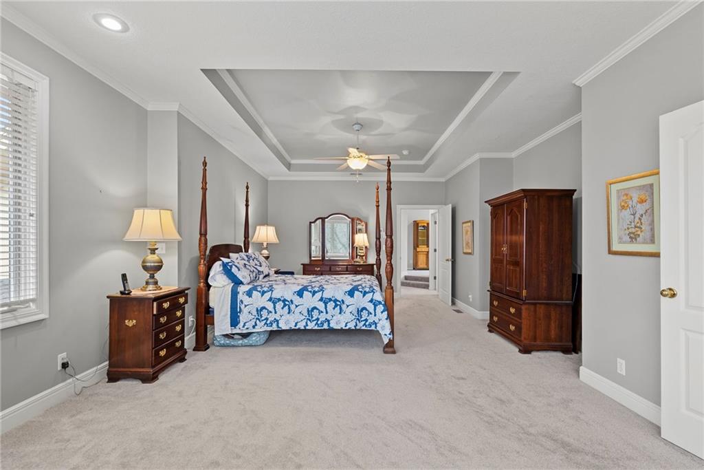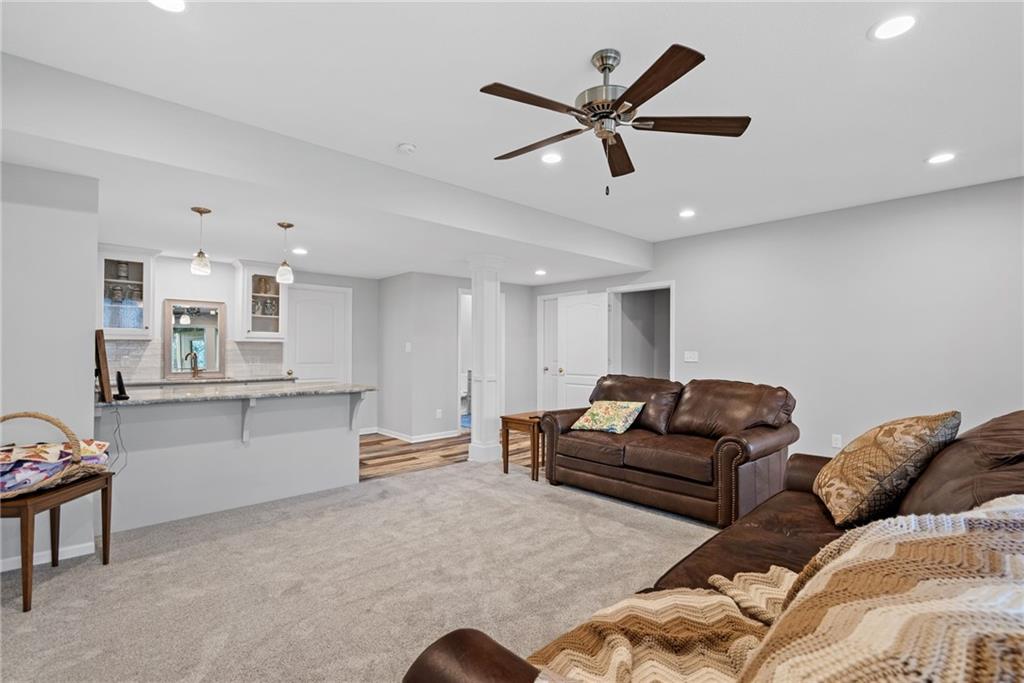 Nestled at the end of a quiet cul-de-sac in the highly sought-after golf community of Falcon Ridge, this impressive two-story home offers space, privacy, and beautiful natural surroundings. Featuring 4 bedrooms, 4.5 bathrooms, and a 3-car garage across approximately 4,500 square feet, the home backs to a serene greenspace with a picturesque dry rock creek. Walls of windows line the back of the home, filling the living areas with natural light and showcasing peaceful, tree-filled views across an expansive lawn. The main level offers both a deck and a screened-in porch—perfect for enjoying the outdoors in comfort. The spacious layout includes an enormous primary suite with an equally expansive walk-in closet, along with a nicely updated primary bath. Hardwood floors have been added to the dining room and study, and the interior has been refreshed with newer paint throughout in recent years. The finished walk-out basement (2016) provides additional living and entertaining space, complete with a built-in bar and access to a patio—ideal for gatherings both inside and out. Additional updates include a lifetime hail-resistant roof (2018) and a completely overhauled irrigation system (2025), offering added value and peace of mind. Located in one of the area’s most desirable communities, this home combines generous living spaces, thoughtful updates, and a tranquil setting just minutes from everything Falcon Ridge has to offer.