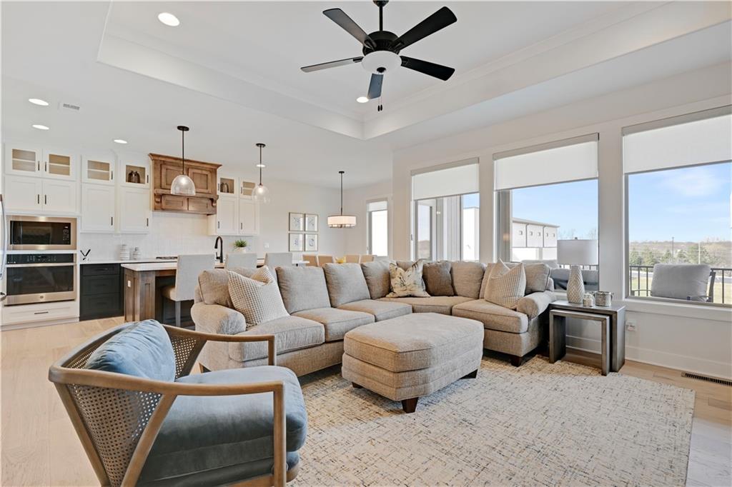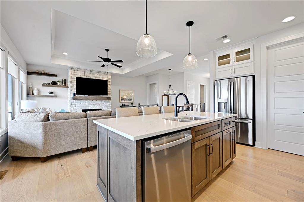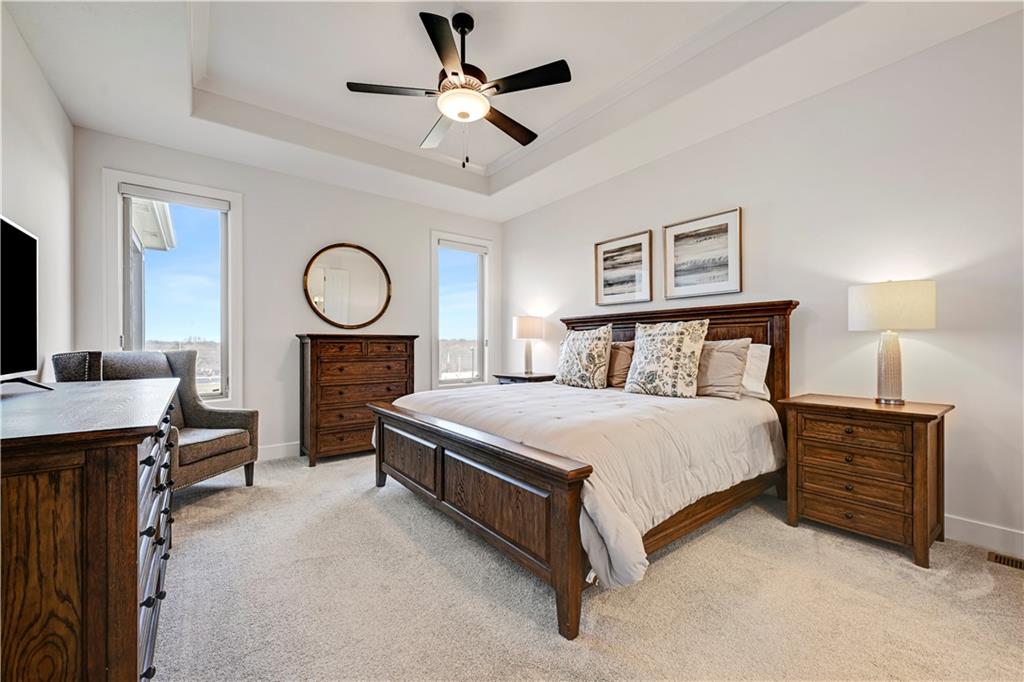 Perfect location, nearly brand new home, finishing touches already done for you! This reverse 1.5 story villa, located in Crestwood Village - a maintenance provided community - features an open concept floor plan. This stunning home has tons of natural light coming through the walls of windows in the great room with fireplace. Warm, wide-plank hardwood floors throughout the great room, dining area, kitchen and mud room. Enjoy cooking in the gorgeous kitchen featuring a center island, custom cabinets, quartz countertops and stainless appliances. You will FALL IN LOVE with the huge, L-shaped, walk-in pantry (including a counter top to host a coffee bar/air fryer) and so much accessible kitchen storage. The private owner's suite includes an ensuite with double vanities, quartz countertops, spacious walk in shower, and a gigantic walk in closet featuring 3-tier/off season storage. Second bedroom/study on the first floor with walk in closet conveniently located adjacent to a full bath. Take the stunning, U-shaped staircase down to the finished, walkout basement, LVP floor with wet bar where you can entertain and enjoy watching the game. Two more bedrooms and full bath are perfect for guests! Abundant storage in the unfinished area of the basement. Nice finishing touch - painted floors in the unfinished storage area. Sellers have installed high-end window treatments that will remain with the home, along with fridge, washer and dryer. Come by to see this beautiful community in a fabulous location. Close to shopping, restaurants, grocery stores, entertainment, medical facilities and walking trail. Enjoy maintenance provided living for $267/month - included is lawn maintenance, snow removal, exterior paint and more! Vibrant community. Cascading views. Exceptional, well-manicured landscaping. Fences allowed at Crestwood Village!