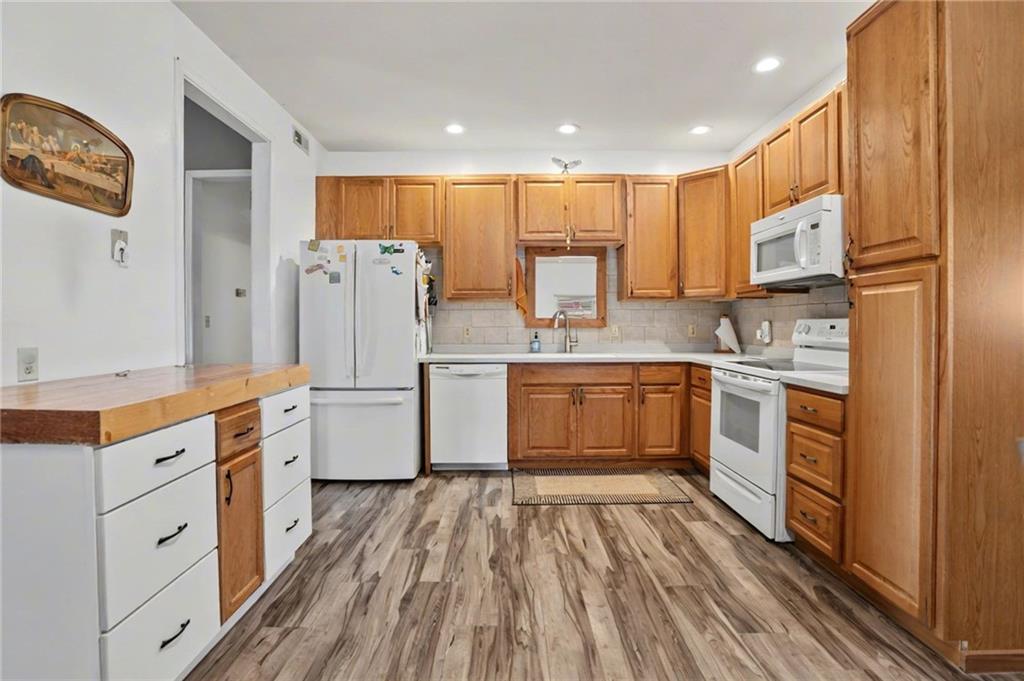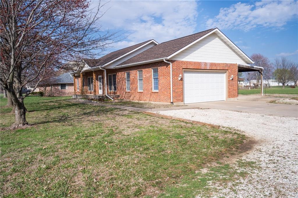 Beautiful brick home on 2 acres with a full unfinished basement offering plenty of room for storage or future living space. New roof, all new flooring throughout, all new kitchen cabinets, and new Corian countertops in the kitchen, plus Corian vanity tops in the bathrooms make this home move-in ready. Enjoy relaxing on the covered front porch or covered back patio, perfect for entertaining or quiet evenings outdoors. The property also features a large shop with plenty of room for hobbies, projects, or additional storage. The perfect blend of space and convenience — enjoy the feel of acreage while still living in town.