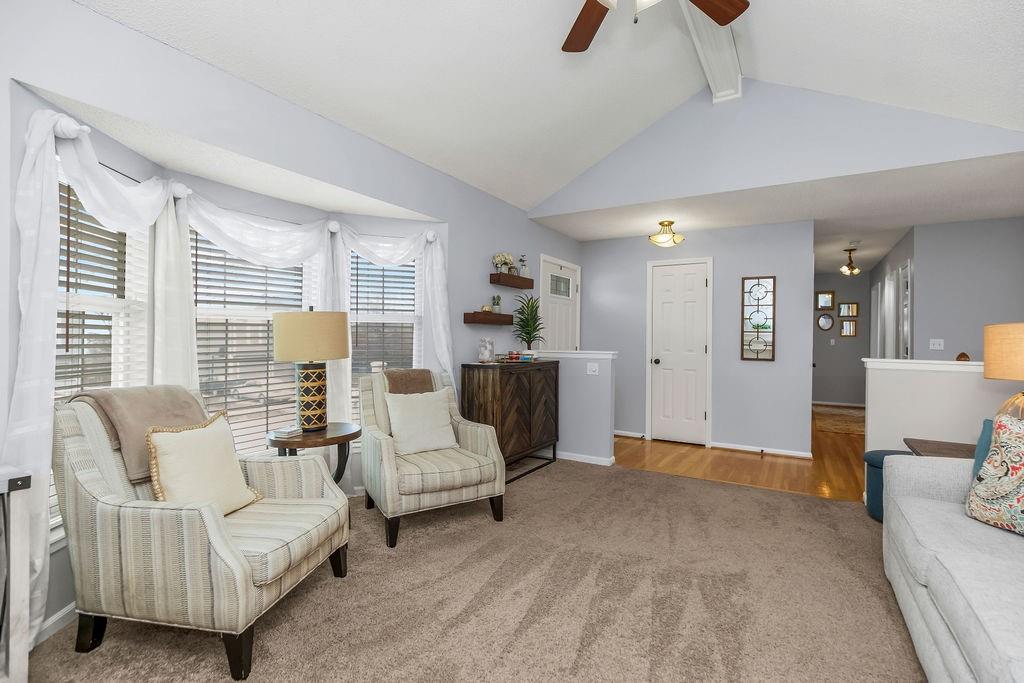 So much to love in this inviting Lee's Summit home! The spacious living room features a cozy fireplace and a stunning vaulted ceiling with a beautiful wood beam accent—perfect for relaxing or entertaining. The kitchen and dining area showcase hardwood floors, abundant cabinetry, and easy access to the back deck—ideal for morning coffee or evening gatherings. The primary suite is a true retreat, offering a vaulted ceiling, skylight, walk-in closet, and a private bath with a walk-in shower. Additional bedrooms are generously sized and include carpet, ceiling fans, and window blinds for comfort and convenience. The hall bath features tile flooring and a shower/tub combination. The finished lower level adds valuable living space with a comfortable family room and a convenient half bath—great for guests or game nights. Step outside to enjoy the deck overlooking a fully fenced backyard, perfect for entertaining, pets, or play. Plus, enjoy peace of mind with a roof that’s only 6 years young! Located in an unbeatable spot just minutes from restaurants, shopping, St. Luke’s Hospital, and with easy highway access—this one checks all the boxes.