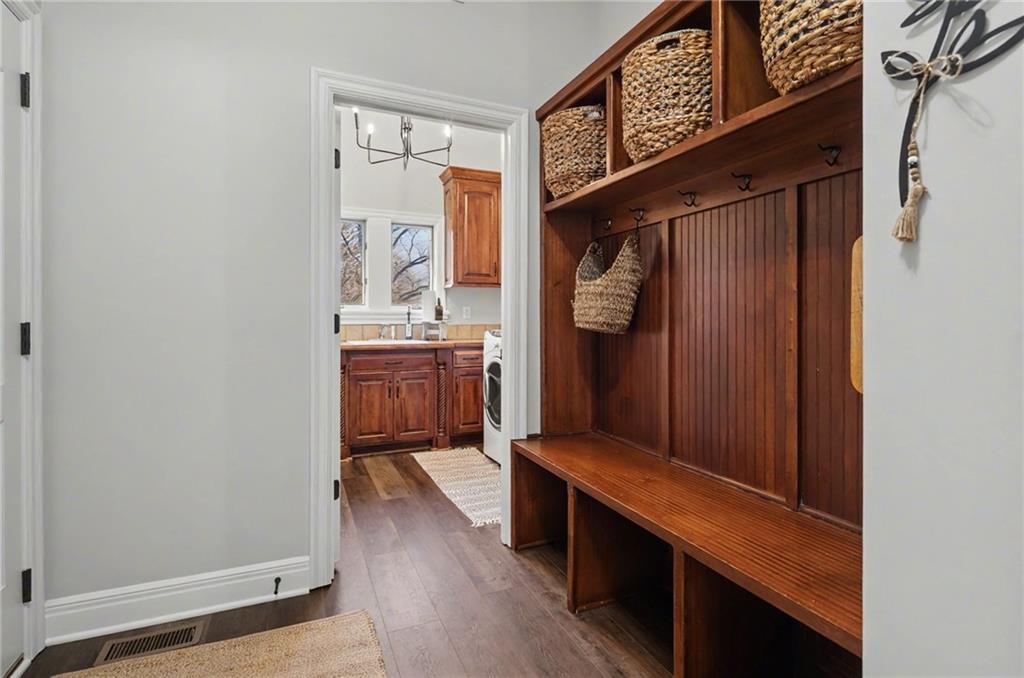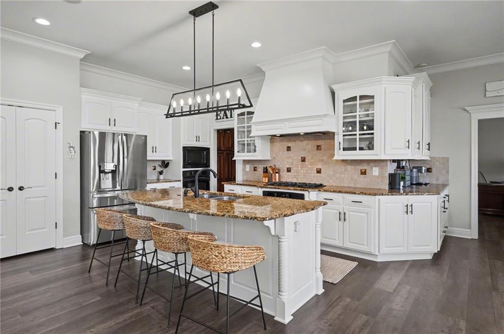 Unique opportunity to own an expertly crafted luxury home located in a quiet neighborhood. Soaring ceilings, high end finishes, 1,380 sq ft of unfinished storage with natural light and windows everywhere. Major expense updating trim & cabinet paint, double HVACs, flooring, lighting, etc. Kitchen has double wall ovens, gas cooktop, a large kitchen island next to a screened in deck overlooking all of the land going down to the lake that the neighbor owns. Formal dining room offers a refined space for entertaining or hosting special holiday gatherings. Guest room on the front and office/3rd bedroom on the back. The full walkout basement has even more living space with 2additional bedrooms and a large second living area. A wet bar complete with a pantry, refrigerator, dishwasher, and microwave perfect for hosting guests or watching movies. Enjoy colorful Kansas sunsets in your back yard with no HOA to answer to.