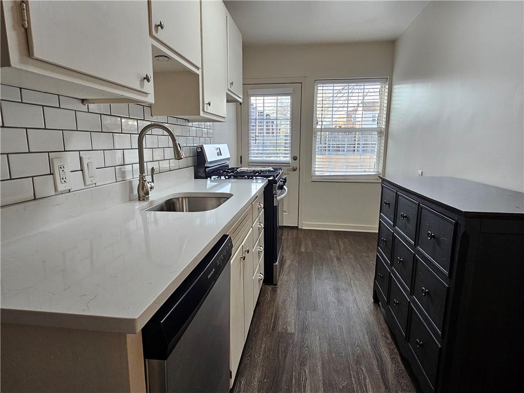 One bedroom condo in the West Plaza neighborhood! This super cute condo has hardwood floors, granite counters, and stainless appliances, including gas range. Cozy balcony with nearby trees for added privacy. Bathroom has LVP flooring and shower/tub combo. Washer and dryer included. Bedroom fits a king size bed. One assigned parking space included in the lot behind the building. Easy access from the parking to the condo without taking any stairs. LOW HOAs include the parking, water, and trash. Building is wired for Google Fiber. There's also an outdoor community patio. Don't miss this West Plaza gem! Enjoy the ability to walk to the plaza with shops and restaurants at your fingertips. HOA does allow rentals with a minimum lease of 30 days. Investors Alert: will sell as a package with other available condos, contact listing agent for details