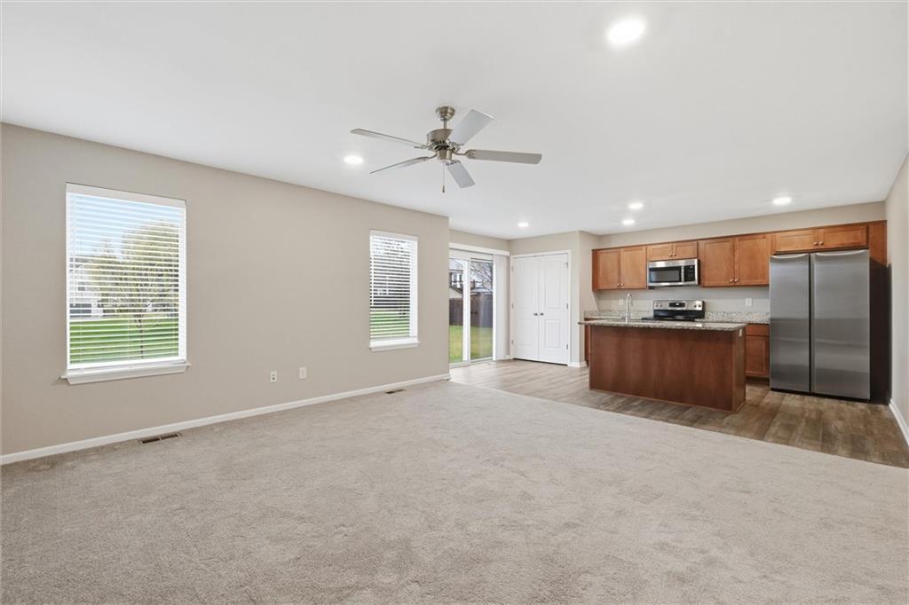 Welcome home to this beautifully maintained 3-bedroom, 2.5-bath split-entry home located in the desirable Setter’s Pointe community in Peculiar. Built in 2021, this move-in ready home offers modern finishes, functional living space, and a layout designed for both everyday comfort and entertaining. The open-concept main level features a bright and inviting living area that flows seamlessly into the kitchen and dining space. The kitchen is a standout with granite countertops, stainless steel appliances, a large center island with seating, and a walk-in pantry, making it perfect for cooking, gathering, and hosting. The spacious primary suite offers a private retreat with an en-suite bath featuring a double vanity and walk-in shower. Two additional bedrooms and a full bath provide plenty of space for family, guests, or a home office. Downstairs, the finished lower-level family room with half bath adds flexible living space ideal for movie nights, a playroom, or workout area. Step outside to the back deck overlooking the large backyard, perfect for summer BBQs, relaxing evenings, or entertaining friends and family. Additional highlights include luxury vinyl plank flooring, main-level laundry, a 2-car attached garage, and a generous lot. Conveniently located in the Raymore-Peculiar School District with easy access to shopping, dining, and major highways. Don’t miss the opportunity to make this beautiful home yours!