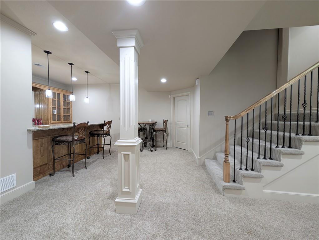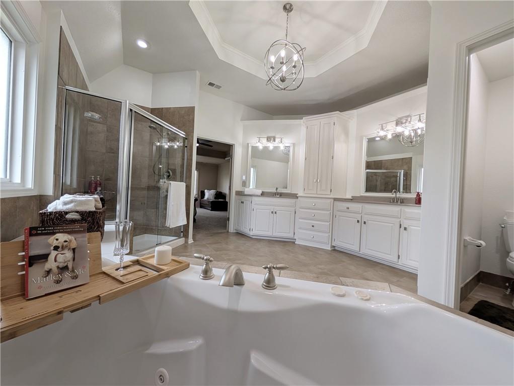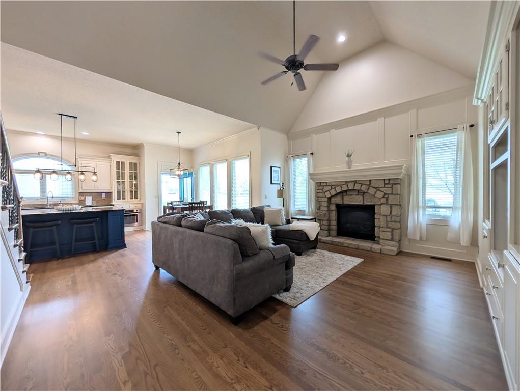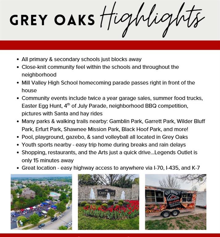 Luxury builder Lambie-Geer plan in sought after Grey Oaks Eagle View. Just blocks to all schools. All NEW windows, NEW roof, NEW garage doors, NEW gutters. NEW Lighting. NEW carpet. NEWLY finished hardwood floors. NEW paint inside and out. STANDOUTS: Huge Owners suite with spa-like bathroom & endless closet. DON’T MISS the huge DAYLIGHT BASEMENT with FULL BAR & THEATER! Magnificent split-landing staircase overlooking two large living rooms, island-kitchen, dining room & spacious entry, plus a large front office. HUGE CHEF’S KITCHEN: large island, double ovens, large pantry. Plenty of space for gatherings with friends & family. Soaring ceilings, huge windows, dual fireplaces, deluxe trim work & details. Step outside to custom flagstone patio with gas firepit & HUGE FENCED YARD. BRIGHT & NEW INSIDE: new paint, new carpet, redone wood floors, new lighting, new toilets & faucets, everything is done. Primary Suite with large sitting area, double-vanity, jet tub, heated floors, & endless closet space. You will totally FLIP over the DAYLIGHT finished basement with full bar, THEATER/MEDIA ROOM (or convert to a game room), large rec area, plus bedroom, full bath, & still tons of storage - IT HAS IT ALL! OUTSIDE IS A SHOWSTOPPER: Stately pillared front porch, elegant bay windows, and sophisticated metal roof accents that command attention. NEW ROOF, ALL NEW WINDOWS, NEW GUTTERS, NEW GARAGE DOORS, NEW PAINT - WOW! This HUGE LOT is a prime coveted spot right on the Mill Valley Homecoming Parade Route. GREY OAKS: Neighbors out with pets stopping to visit, driveway sit-downs, fenceline convo’s & backyard firepits - Grey Oaks is a true COMMUNITY. Unmatched location, great community feel and activities, K-12 SCHOOLS right down the street - also just blocks to Sacred Heart School. Large pool, sand volleyball, playground, & shelters. Holiday Hayride, Egg Hunt, July 4th Parade, BBQ Competition & Fun Run, food trucks, & MORE.