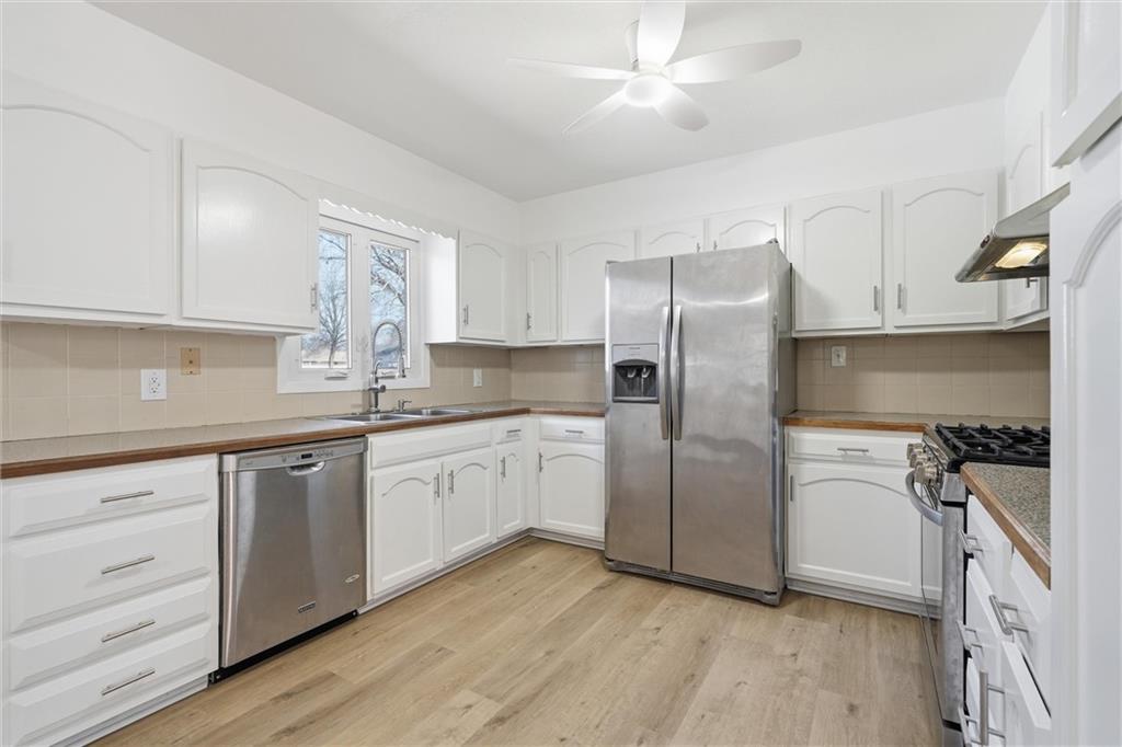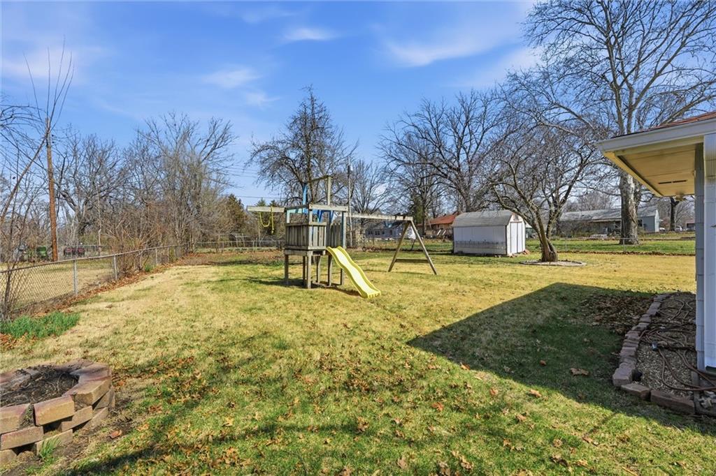 Big ranch with a basement in Grandview. 4 bedrooms on the main level plus a 5th nonconforming bedroom in the lower level. Large sized lot, with cute flower beds that will come alive this spring. Fenced yard with a playset, covered deck, and a shed for storage. Inside you will find it freshly painted throughout, refinshed hardwoods on the front side of the home, new doors and light fixtures. Kitchen with stainless steel appliances LVT flooring. Large dining room space on the back side or can be used as a secondary living room. Dedicated Main level Laundry/ Utility room. Downstairs has another living room with a fireplace, nonconforming 5th bedroom, and a 3rd full bath- plus a storage room. Dual zoned HVAC units and zoned water heaters. If you need a larger ranch with lots of space, this is the one!