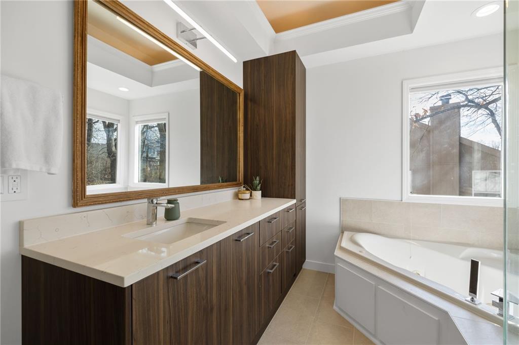 Welcome to this stunning 4-bedroom, 2.5-bath home in the Coventry Homes community. Every detail has been elevated for modern living, from the new LVP flooring and fresh interior paint to the beautifully remodeled kitchen featuring updated cabinetry, sleek countertops, and stylish fixtures. The layout is ideal for both day-to-day living and entertaining. Spacious bedrooms, refreshed bathrooms, and thoughtful upgrades throughout make this home completely move-in ready. The finished basement provides flexible space for a rec room, home office, or gym, plus an excellent storage room. Outside, enjoy a private backyard with a cozy sitting area, perfect for relaxing or entertaining guests and access to the Strathbury Park trail right across the street in the front of the house. Ideally located near downtown Kansas City, KCI Airport, Parkville and all major conveniences, this home truly checks every box! A must-see!
