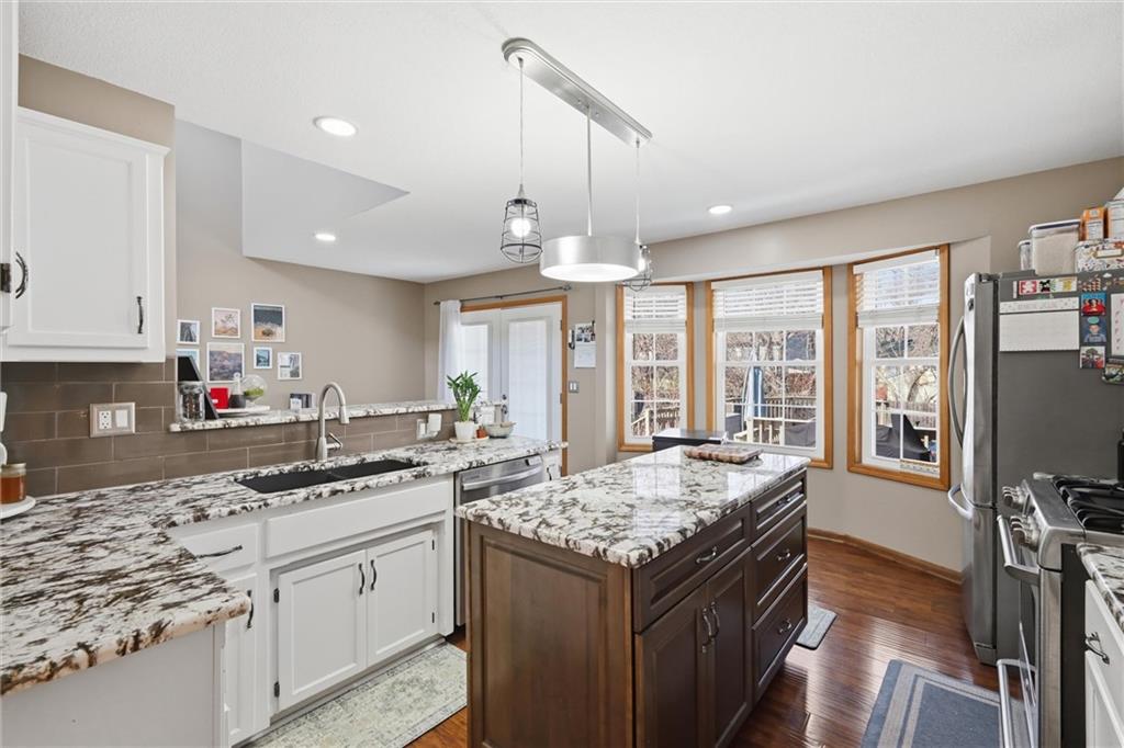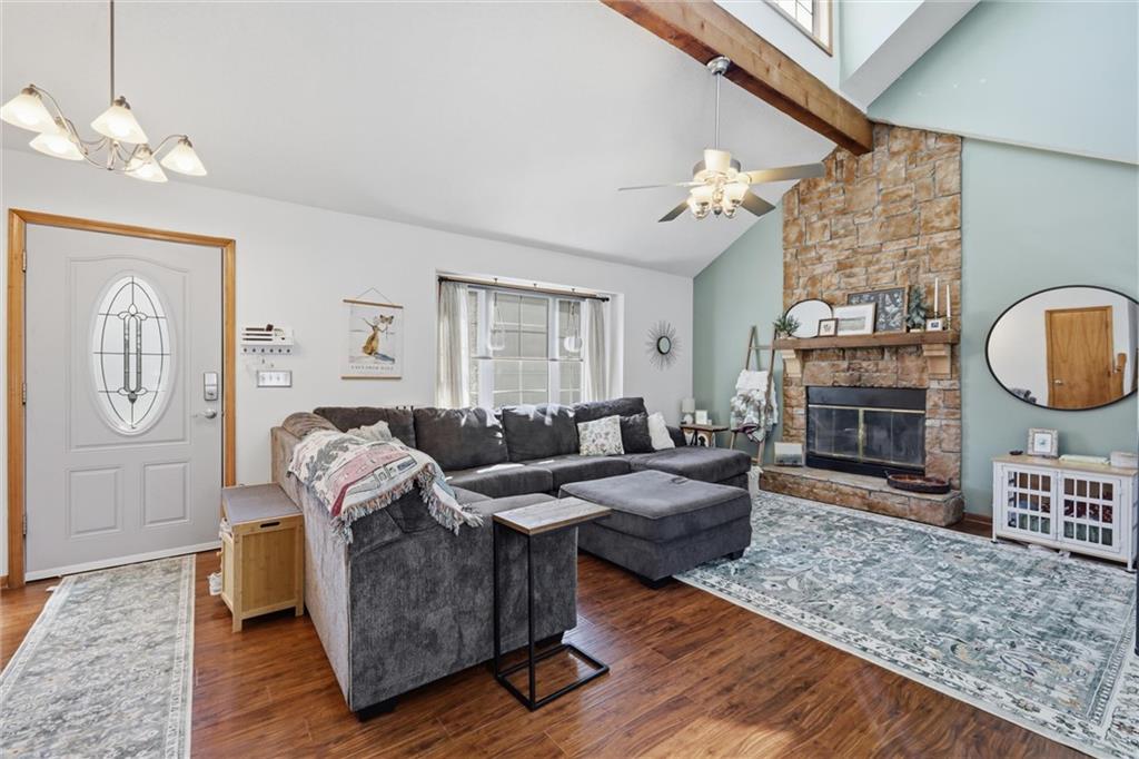 Tucked away at the end of a quiet cul-de-sac, this inviting 4 bedroom, 2.5 bath home offers the perfect mix of comfort, entertaining space and location. Inside, the living room welcomes you with vaulted ceilings and a striking stone fireplace. The updated kitchen features white cabinetry, granite countertops and a gas stove. Upstairs you’ll find the primary suite with walk-in closet and updated primary bathroom along with two additional bedrooms and a full bath. The lower-level fourth bedroom offers great flexibility and works perfectly as a home office or workout space, with a convenient walkout to the backyard. The finished basement is made for entertaining, featuring a recreation area with a full bar. Step outside to a fully fenced backyard with an above-ground pool and surrounding deck, perfect for summer gatherings. Easy access to everything Lee’s Summit offers makes this home one you won’t want to miss!