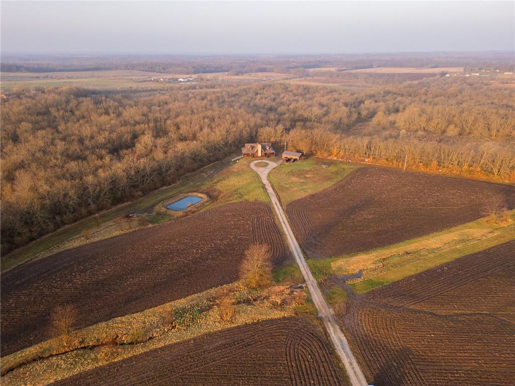 There’s something about this place that slows things down in the best way! Mornings begin with the sun rising across nearly 18 acres of open ground, lighting up the landscape and the wraparound porch where the day starts with a coffee and a quiet view. Just outside Blairstown, this 4-bedroom, 3.5-bath home sits off blacktop Highway O and is served by rural water, offering both peaceful surroundings and practical convenience. Much of the land is open and tillable, granting wide views and a sense of space that’s becoming harder to find. Inside, the living room opens up with vaulted ceilings that give the space an airy, welcoming feel. A stone fireplace anchors the room and creates a natural gathering spot, especially on cooler evenings. Large windows on either side bring in natural light and frame views of the property, while the upper-level balcony looks down into the living area and connects the space between floors. The layout was built for everyday comfort as much as for hosting friends and family. The primary suite includes a large walk-in closet, double vanity bathroom, and its own in-suite laundry. Downstairs, the finished walkout basement opens up even more possibilities—movie nights, game tables, a workout space, or simply another place to gather. The wraparound porch runs along the entirety of the home and creates a front-row seat to the property. In the mornings, the sun comes up across the land and lights the whole place in warm color. It’s the kind of sunrise that makes coffee last a little longer. Beyond the home, a 24×40 detached shop adds valuable workspace and storage—ideal for equipment, hobbies, vehicles, or projects that need room to spread out. With nearly 18 acres, the land gives you room to decide what comes next—whether that’s gardening, hobby farming, outdoor projects, or simply enjoying the quiet and privacy of country living. It’s a property that feels open, comfortable, and ready for whatever pace of life you want to bring to it.