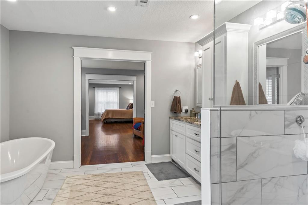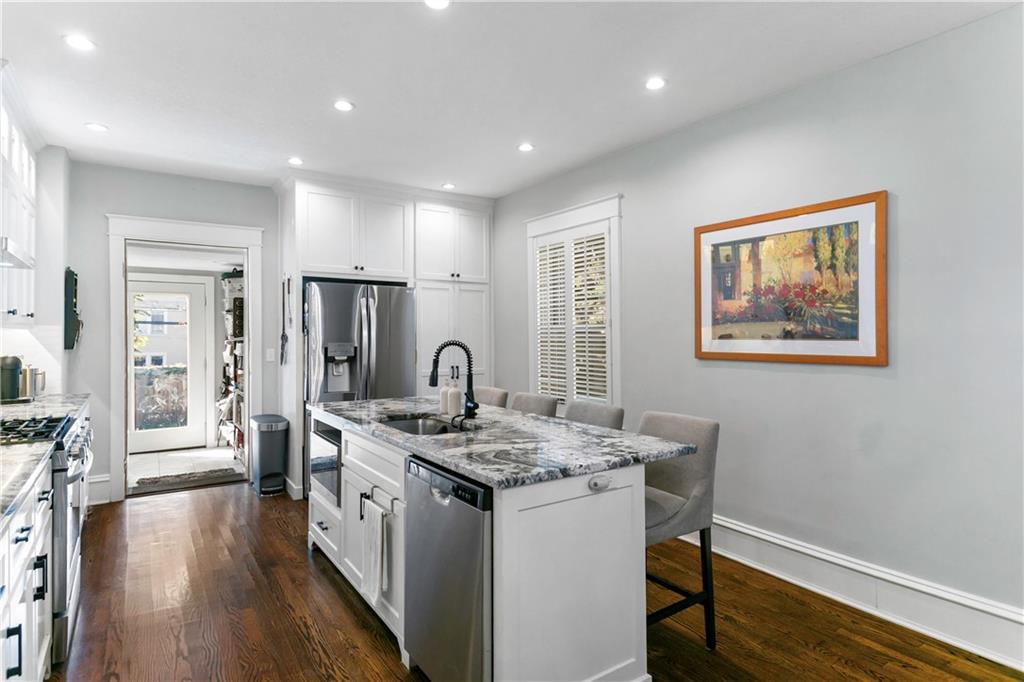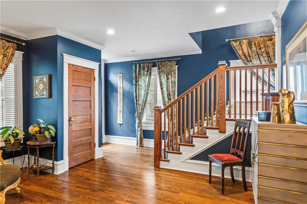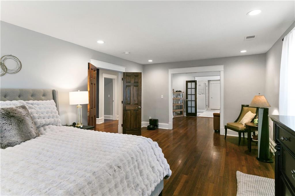 Timeless Luxury in the Scarritt Point Historic District just outside of Downtown. Experience refined living in this magnificent 1910 American Foursquare residence, gracefully situated on a picturesque street, just steps from acclaimed restaurants and vibrant entertainment. Discover sun-drenched interiors adorned with rich hardwoods, custom millwork, and premium fixtures. The grand formal entry sets an impressive tone, seamlessly connecting spacious living areas designed for both comfort and entertaining. Host unforgettable gatherings in the elegant dining parlor, featuring French doors, exquisite lighting, and a dramatic bay of oversized windows. The gourmet kitchen is a chef’s dream—thoughtfully designed with abundant cabinetry, a generous island with breakfast bar, granite countertops, and a secondary dining for casual meals. Retreat to the stately library, accented in deep hues, with a private side entrance. For ultimate convenience and privacy, the main level features a spacious guest suite—perfect for visitors or multi-generational living. A chic powder room is discreetly positioned for guests. Upstairs, the private quarters include a formal corridor, three secondary bedrooms, and a lavish primary suite with a spa-inspired bath and expansive walk-in closet with laundry hookups. Third level offers a contemporary recreation space with panoramic views and a full bath—ideal for relaxation or entertaining. Meticulously maintained, this 4,900-square-foot home features newer mechanicals, including zoned HVAC for year-round comfort. Outdoor living is equally impressive, with a fully fenced backyard, a spacious front porch perfect for morning coffee, and detached two-car garage. Located just a block away from the renowned Kansas City Museum and close to downtown amenities, this residence captures the timeless charm of this convenient and exclusive neighborhood.