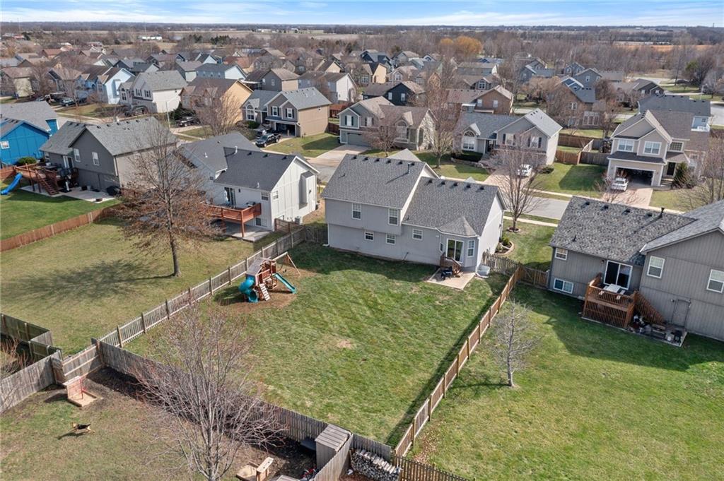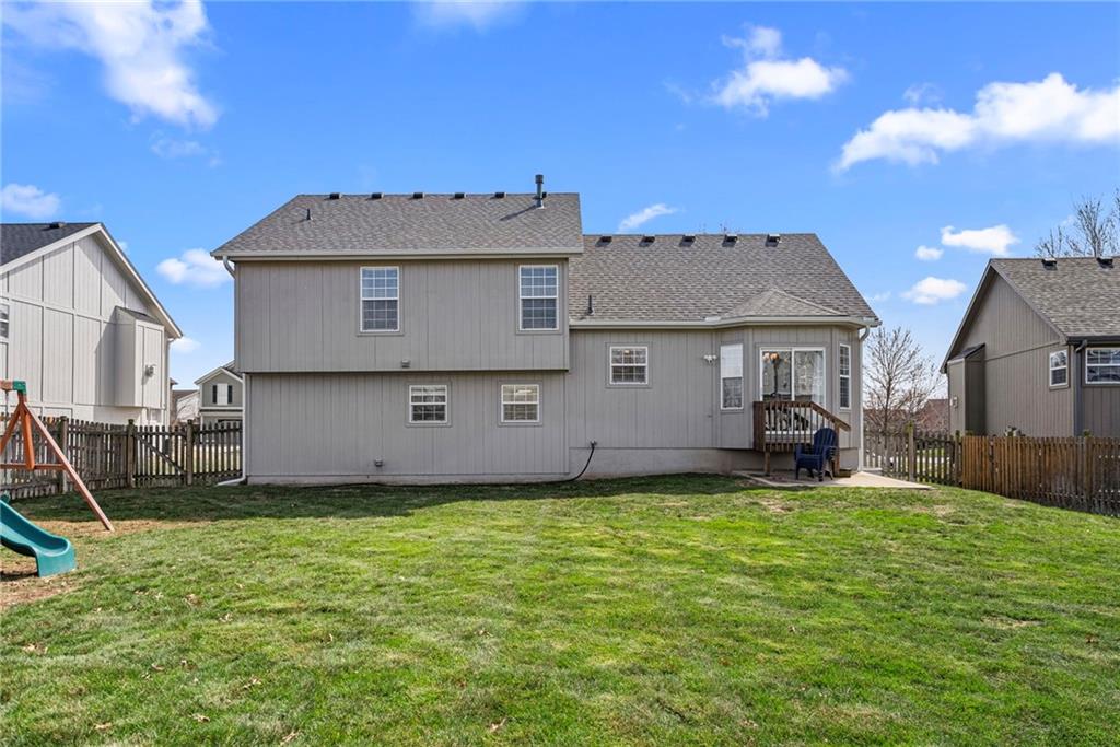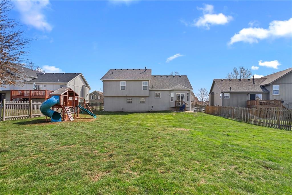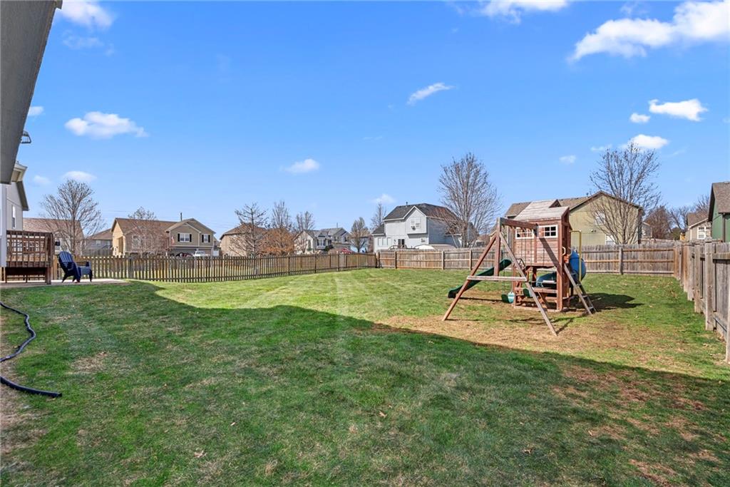 Move-in ready and full of great updates! This well-maintained 3-bedroom, 2.5-bath home offers a spacious and inviting layout with great natural light throughout. The large living room features a gas fireplace and beautiful south-facing windows that fill the home with sunlight. The kitchen offers plenty of countertop space, white cabinets, and newer LG appliances, with the refrigerator staying with the home. Many interior light fixtures have been updated, and much of the popcorn ceiling has been removed to give the home a more modern feel. The spacious primary suite includes a walk-in closet and private bathroom with double vanities and newly updated faucets. Secondary bedrooms are nicely sized, providing comfortable space for family, guests, or a home office. Major mechanical updates provide peace of mind with the roof, HVAC system, and water heater all under 5 years old. The washer and dryer are also included with the home. The unfinished basement offers excellent storage space and features an egress window, providing a great opportunity to finish the space and add a 4th bedroom in the future. Step outside to a large fenced backyard with plenty of room to play or entertain, and the playset stays with the home. Conveniently located less than one mile from the elementary and middle school, with quick access to local shopping, dining, and highways. This home is clean, well cared for, and truly move-in ready. Don’t miss this great value!