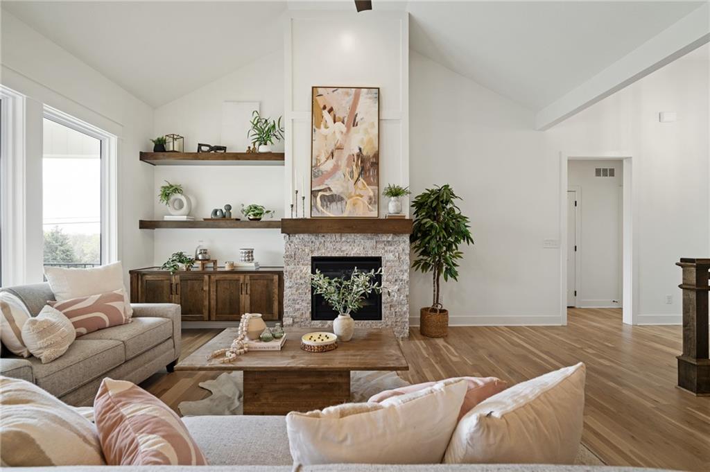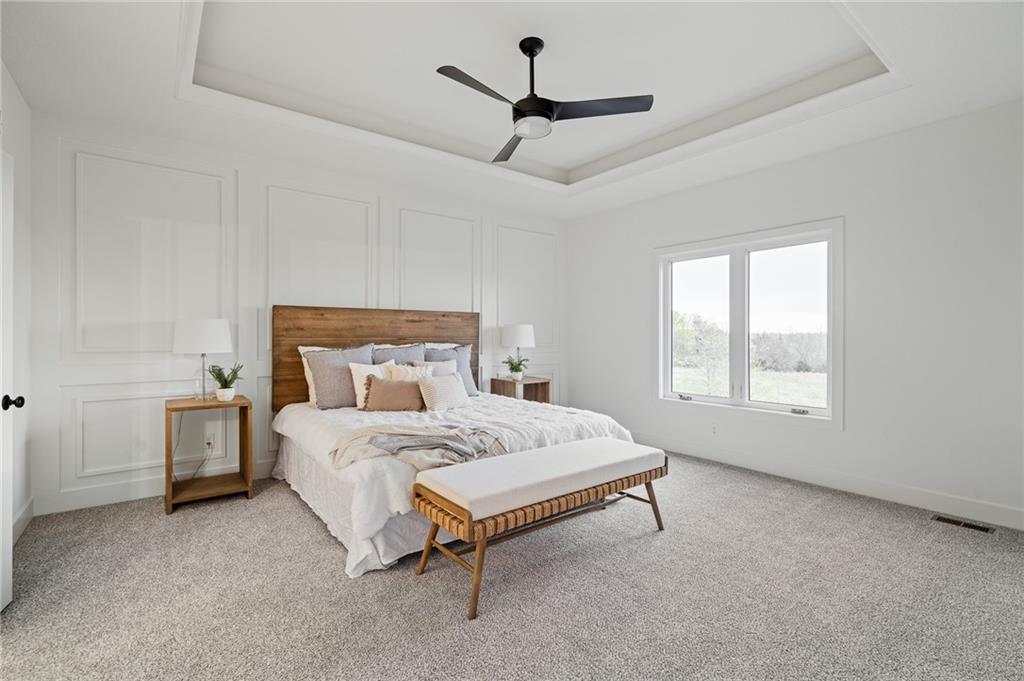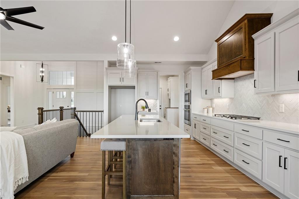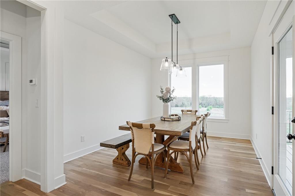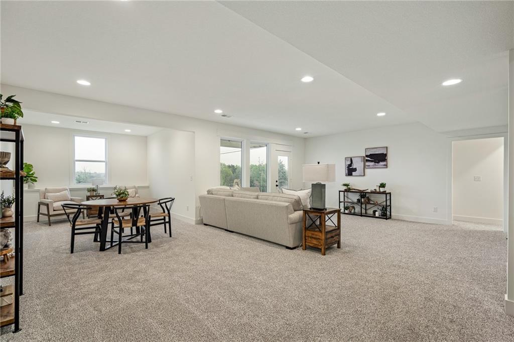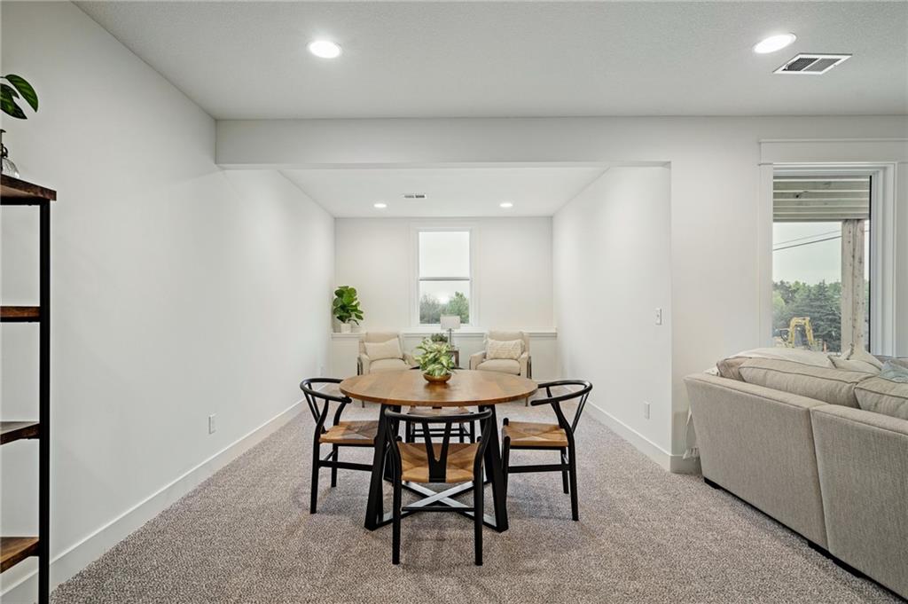 Welcome to the Shea EXP by DCB Homes. This 4-bedroom, 3-bath beauty features a striking front porch elevation and an inviting open layout designed for modern living on a great walkout lot backing to HOA greenspace. This home is loaded with upgrades and features on-trend selections & designer finishes at a NEW PRICE. The main level impresses with a vaulted ceiling spanning the Great Room and Kitchen, creating a bright, airy feel. The kitchen offers abundant cabinetry, a large island, built-in appliances with a gas range, and a walk-in pantry. A spacious dining area is a buyer favorite that opens to the back deck—perfect for entertaining. The primary suite features a walk-in shower, freestanding tub, double vanities, and a generous walk-in closet. Two additional bedrooms and a full hall bath are conveniently located on the opposite side of the main level, along with a laundry attached to the Primary and mudroom. The finished lower level includes a large rec room with bar, fourth bedroom, third full bath, and two large storage areas. A 3-car garage completes this fantastic plan. Ask about our BUYER BONUS: $10,000 in builder-paid closing costs, prepaids, or interest rate buy-down! Lakeview Ridge is a new build community just west of Lake Olathe with great homes started and fantastic lots available. POOL coming in 2027. You can get to the neighborhood off of Dennis & Houston with easy access from K7 or coming from Lakeshore. Our Sales Office is located 14271 Houston. Our development is right next to Lake Olathe and neighborhood feeds into Clearwater Creek Elementary, Oregon Trail Middle School and Olathe West High School.
