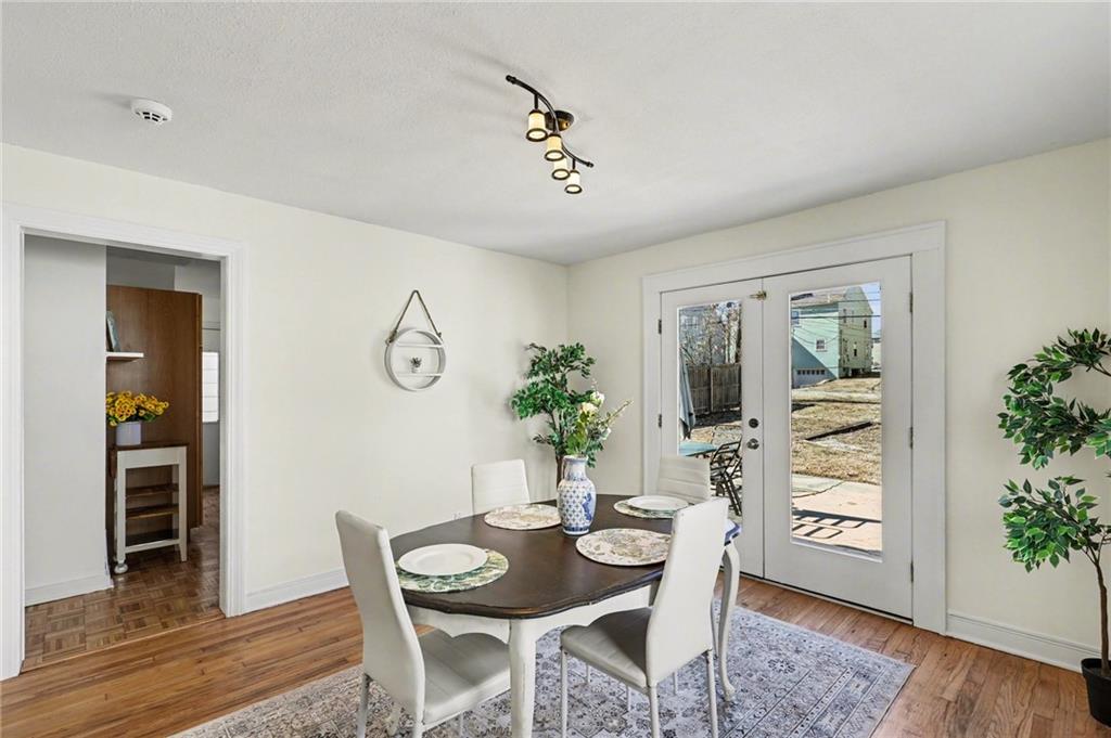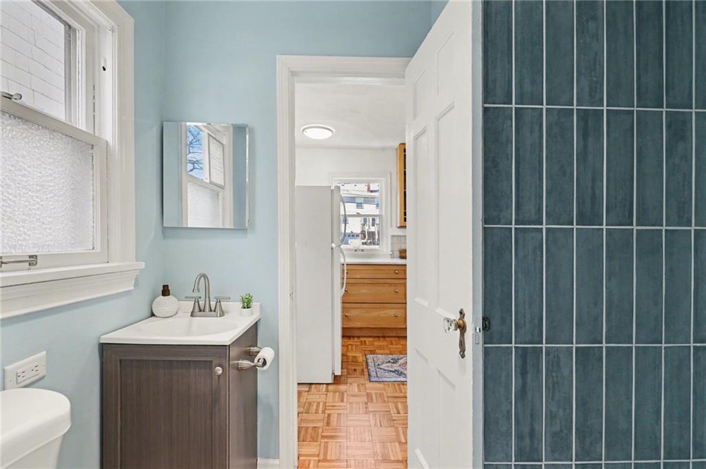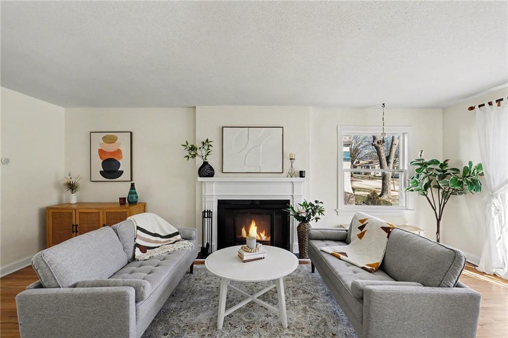 7234 Baltimore St • 1.5-Story Tudor/Traditional • Solar panels • 3BR/2BA • 1,659 SF • Classic 1937 charm meets clean updates in this brick-and-trim Tudor with a covered front porch and dormer details. Inside, the living room features hardwood floors, a large picture window for natural light, and a masonry fireplace. The kitchen offers ample cabinetry, white counters, tile backsplash, dishwasher, and a gas range, with room for a breakfast nook. Two refreshed bathrooms showcase modern fixtures and standout tilework. Main-floor bedroom plus additional bedrooms upstairs; huge walk in closet! Full stone/rock basement provides storage and utility space. Brand New HVAC. Outdoor living includes a patio/deck, and parking is served by a shared driveway with carport-style covered parking. Solar panels are already installed to help offset electric costs. Convenient access to Ward Parkway and W Gregory Blvd.