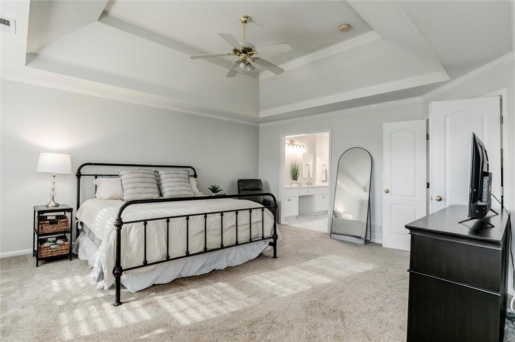 Welcome to this charming home in Nottingham By the Green! It is nestled on a lovely cul-de-sac, with many trees, and a large lot! You will love the floorplan when you step inside! It has so much space for everyone! First floor dining room plus an office/flex room! The great room is spacious and has a wall of windows letting in so much natural light! The see-through fireplace is an awesome feature. Step around the corner to the cozy hearthroom, with a fabulous stone fireplace, generously sized eating space, and a large kitchen! The cabinet doors have been replaced! The hardwood floors have been recently refinished! You will love their updated natural color! Upstairs is a huge primary bedroom, a large primary bath, that has been updated, the vanity was raised and has had new vanity tops and brass fixtures installed! There is also a jetted tub, shower and a nice walk in closet! There is a secondary bedroom with a private en suite and walk in closet. The other 2 bedrooms each boast walk in closets, and connect to a Jack & Jill bath! Upstairs laundry is a BONUS feature you will love! The basement is finished into a secondary living space, large enough to host movies or sports games on TV, and still will still leaving you room for workout equipment and plenty of storage along with a handy half bath! The backyard is really pretty at night with the cool lights hanging over the large deck! Great schools, close to shopping and restaurants! You don't want to miss this house!