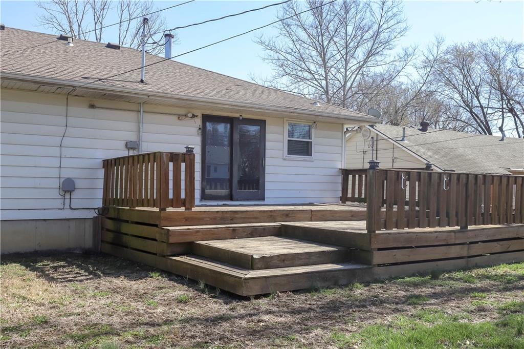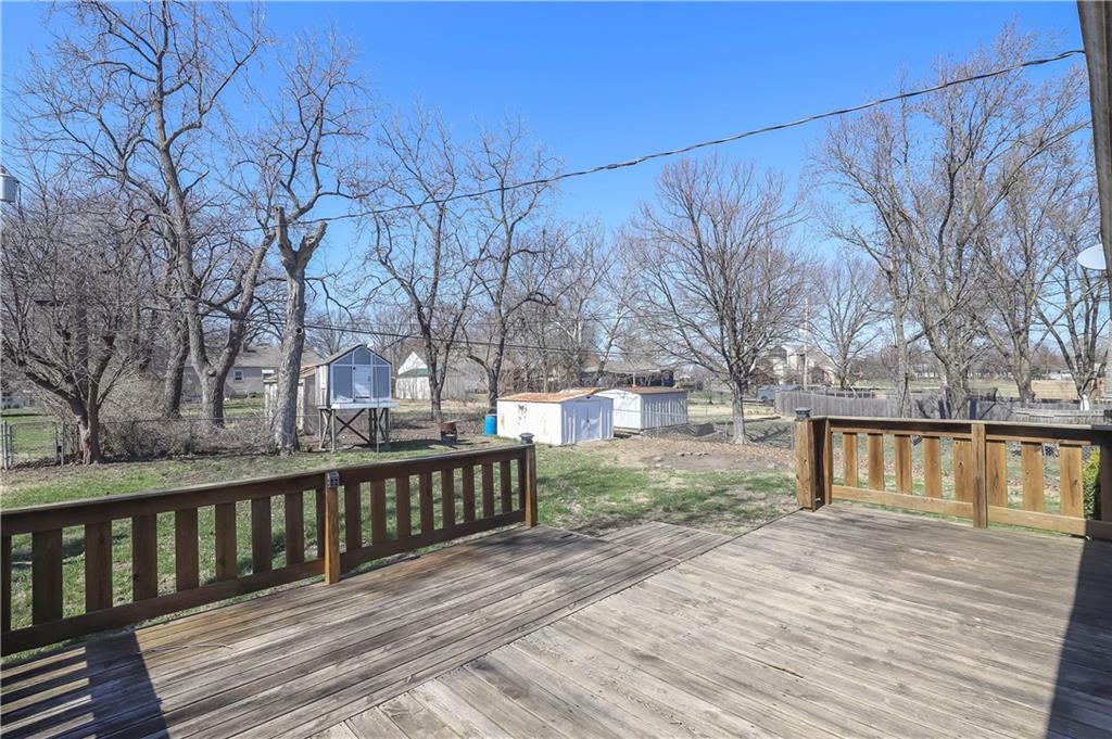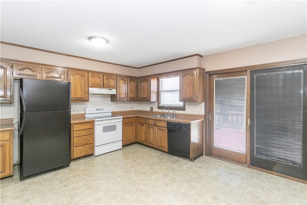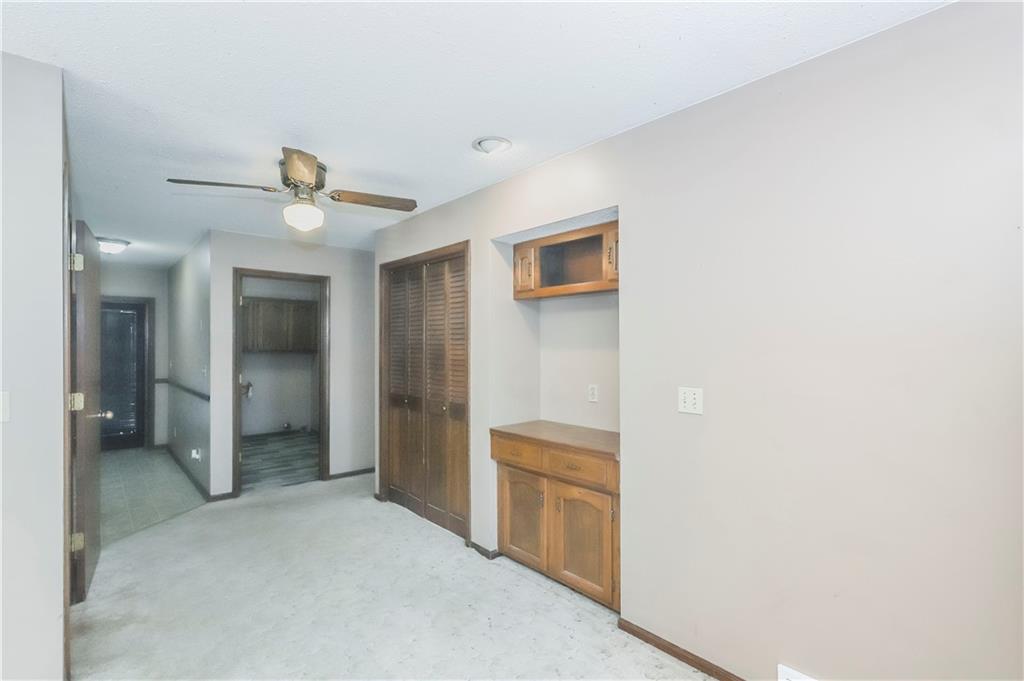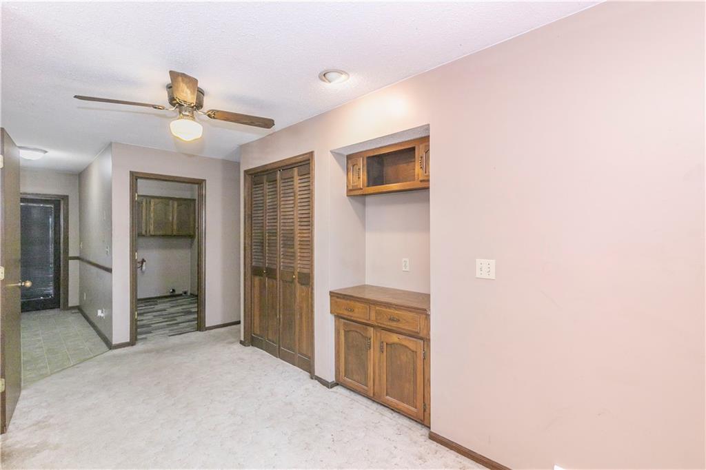 Spacious and full of value, this 3-bedroom, 2-bath home with an oversized 2-car garage is one you won’t want to miss. The large eat-in kitchen offers abundant cabinetry, a pantry, and a sliding door that opens to the deck—perfect for grilling or outdoor dining. All appliances are included. The inviting living room features built-ins and a charming bay window, while newer blinds add a fresh touch throughout. All bedrooms are generously sized, and the convenient bedroom-level laundry room includes a built-in ironing board. Hobbyists will love the deep garage with workshop tables, cabinets, exhaust fans and a utility sink. The utility room provides an additional workspace. A basement storm shelter adds peace of mind. Other highlights include 200-amp electrical service, a maintenance-free exterior, and a fenced backyard complete with a shed and playhouse. Enjoy peaceful views of the neighbor’s pond from the front porch. A brand-new roof will be installed in Spring 2026. Located near Hwy 7 with quick access to parks, schools, a golf course, and more—this home offers comfort, convenience, and room to grow.