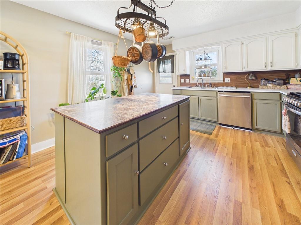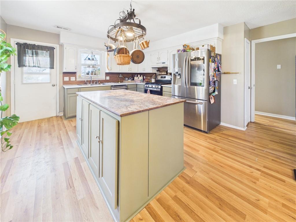 Just Listed – Charming Cottage with Extensive Updates! This beautifully maintained 3-bedroom, 2-bath cottage-style home reflects true pride of ownership and thoughtful updates throughout. Since purchasing the home, the sellers have made numerous improvements, including a new roof (2025), HVAC system just 2 years old, newer flooring installed over the past two years, and updated base cabinets in the kitchen. Both bathrooms have been tastefully remodeled with new tile, including a refreshed hall bathroom with a new shower head and exhaust fan. Additional upgrades include a new dishwasher (2025), new shelving and cabinetry in the laundry room, and a new ceiling fan in the spacious primary bedroom. The kitchen is a chef’s dream, featuring a large island with additional storage, gas stove, generous cabinet and counter space, and room for a full-sized dining table. Just off the kitchen is a conveniently sized laundry room with added storage. The primary suite is oversized, offering a large closet and private en-suite bath with a tiled shower and updated shower head. Two additional bedrooms are generously sized with above-average closet space. Step outside to enjoy the fully fenced backyard, perfect for relaxing or entertaining, complete with a storage shed with rebuilt flooring and a newly added fire pit. Additional improvements include a new vapor barrier and dehumidifier installed in the crawl space. This move-in ready home combines comfort, updates, and charm — a must-see!