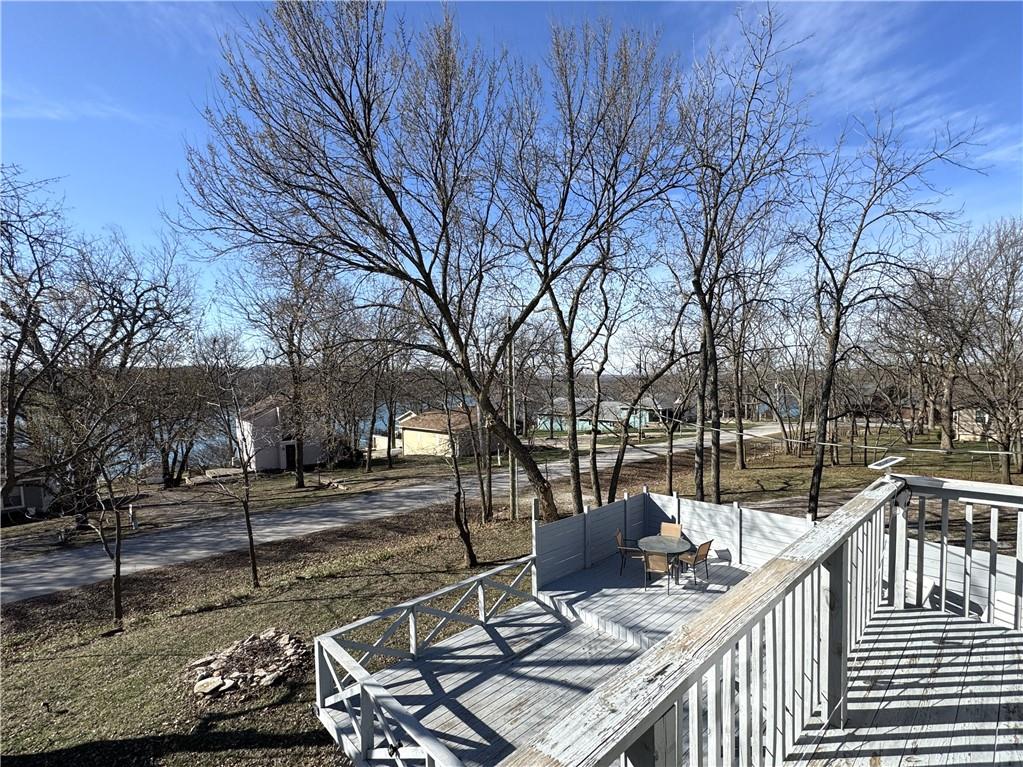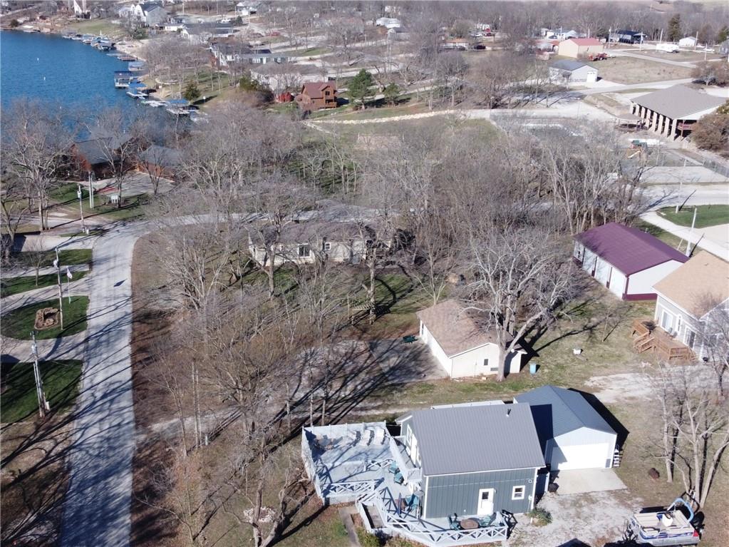 Enjoy lake views with this 1st tier property in Linn Valley Lakes. Plenty of outdoor living space with the enormous deck! A top to bottom rehab was completed in 2019 and the home still looks fresh and new. An oversized 24 x 20 garage with concrete floors and electricity is tucked behind the home! Open floorplan on the main floor has lots of sunlight and great views towards trees and the main lake. There is one bedroom and a bathroom on the main floor. Upstairs, the Primary bedroom is huge and has a private martini deck with views of the lake. A 3rd bedroom, 2nd full bath and a bonus loft area are also located on the 2nd floor. The fenced back yard provides a nice area for pets. This great property is located on a paved road and is connected to public sewer and water lines. The clubhouse, pool and sand beach are a 1/2 block away and the boat ramp for launching your boat or jet ski is just down the street.