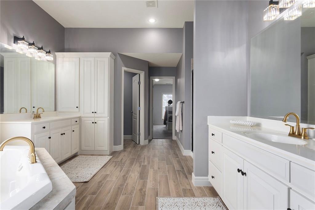 Welcome to this beautifully updated home in the sought-after Prairie Highlands golf course community! Located at 26032 W 150th St in Olathe, this move-in ready home features fresh interior paint, brand new carpet upstairs with high traffic on stairs, updated light fixtures, and all new faucets and shower fixtures throughout. Major updates include a newer roof and newer AC for added peace of mind. The spacious layout of over 4200sqft includes a cozy hearth room and finished basement, both wired for surround sound—perfect for entertaining or movie nights. Step outside to enjoy the freshly stained deck, ideal for relaxing or hosting guests. The large primary suite offers a private retreat with new tile in the bathroom, a jacuzzi tub, new shower doors, and a huge walk-in closet. Located in the desirable Prairie Highlands golf course community, residents enjoy access to the neighborhood golf course and clubhouse restaurant—perfect for grabbing a meal or meeting friends close to home. Move-in ready with stylish updates throughout—this one is a must see!