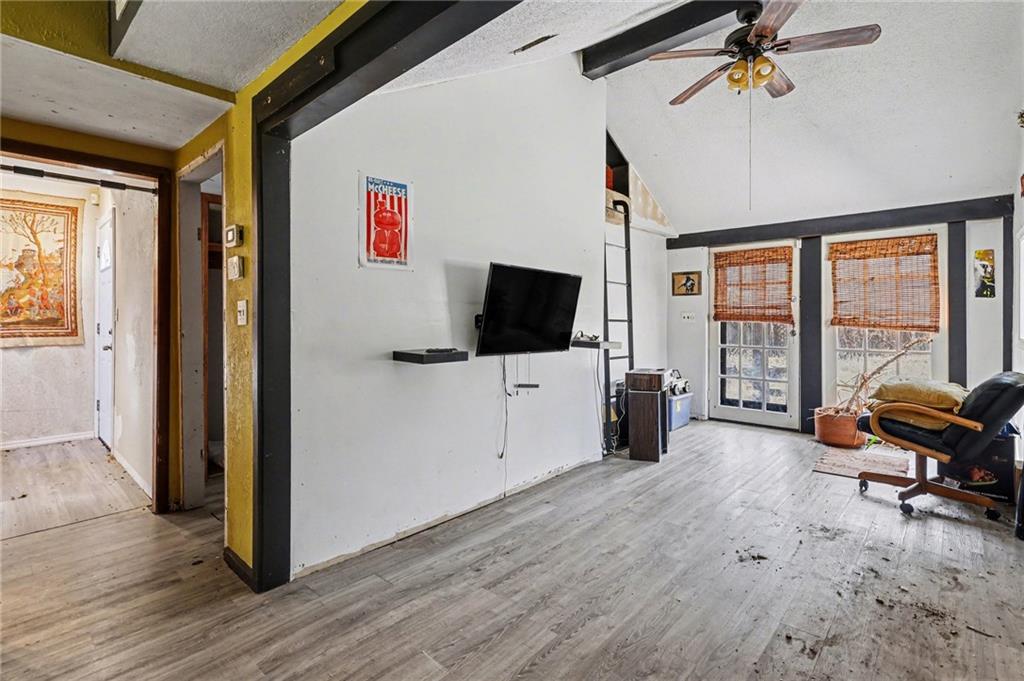 Private, treed lot with a two bedroom home, PLUS a 2 car shop/garage with an attached space for a guest house or office. Land backs up to Shoal Creek. This is fixer upper/investor special with lots of potential! A home with land for less than $100k in NKC school district.