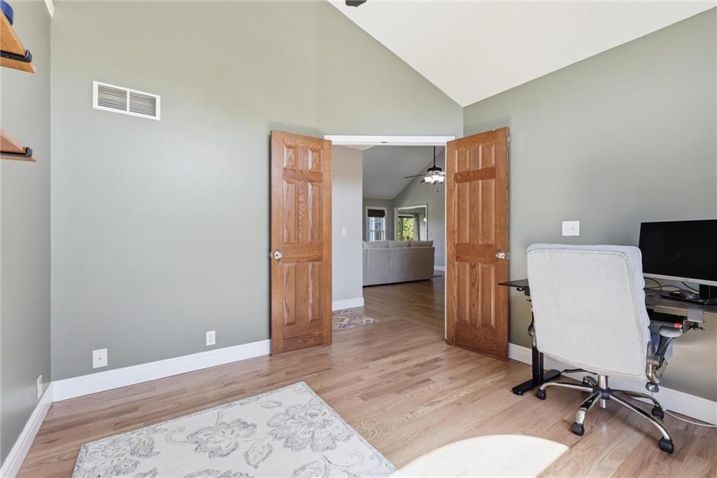 Welcome to your private retreat w WORKSHOP & shed on 3.68 acres—where modern efficiency meets peaceful, nature-filled living. This immaculately maintained ranch home offers 5 bedrooms and 3 full baths, with 3 bedrooms on the main level and 2 additional bedrooms downstairs—perfect for flexible living or multi-generational needs. The home features two spacious living areas and a partially open floor plan with a cozy fireplace, creating an inviting space for both everyday living and entertaining. The home is ALL electric and equipped with a highly efficient Bosch geothermal HVAC system, delivering impressively low utility costs—often less than a townhome. Major updates include a new roof (2019), gutters and flashing, fresh exterior paint (2020), beautifully refinished hardwood floors, new appliances (November), main lvl popcorn ceiling removal (2023), and fresh interior paint throughout. The property also features an impressive 30x48 outbuilding built by QSI, complete with 200-amp service, concrete floors, 8’ doors, and 10’ eaves—ideal for a workshop, storage, or hobby space. Step outside and experience what truly sets this property apart. Thoughtfully & organically maintained, the land has been cared for without harsh chemicals—supporting healthy soil, pollinators, & wildlife. The grounds are rich with established plantings and mature trees, including 8 apple trees, approximately 20 producing blueberry bushes, pear, plum, pecan, walnut, oak, multiple maple varieties, redbud, pine, and more. You’ll also find established asparagus, garlic, bunch onions, mint, lemon mint, & strawberry patches. Nature lovers will appreciate the abundant wildlife—frequent sightings of birds, rabbits, foxes, squirrels, tree frogs, & more—along with a partial creek area on the north side complete with a charming treehouse. This one-of-a-kind property offers space, sustainability, and serenity—paired with modern updates, efficiency, and a layout designed for comfortable living.