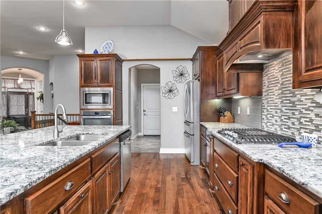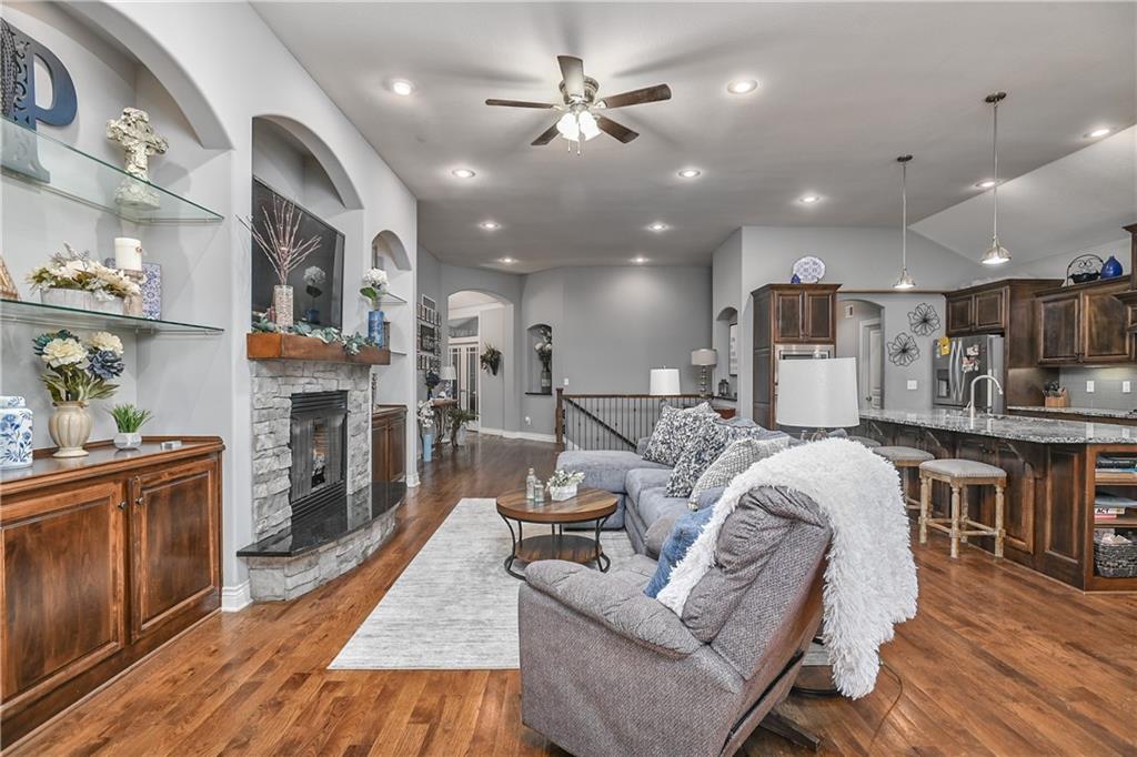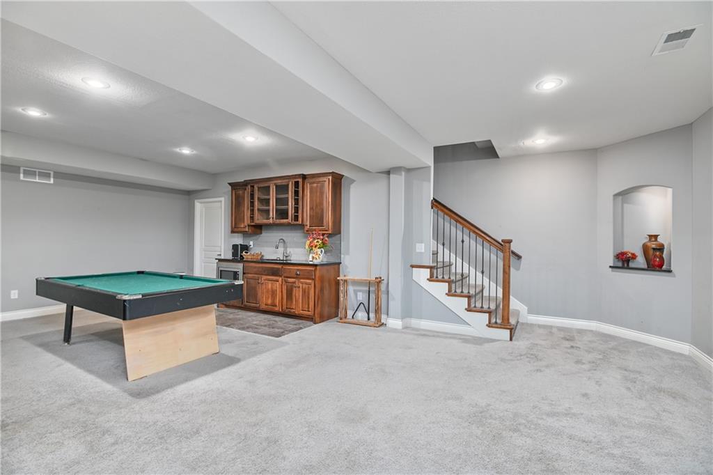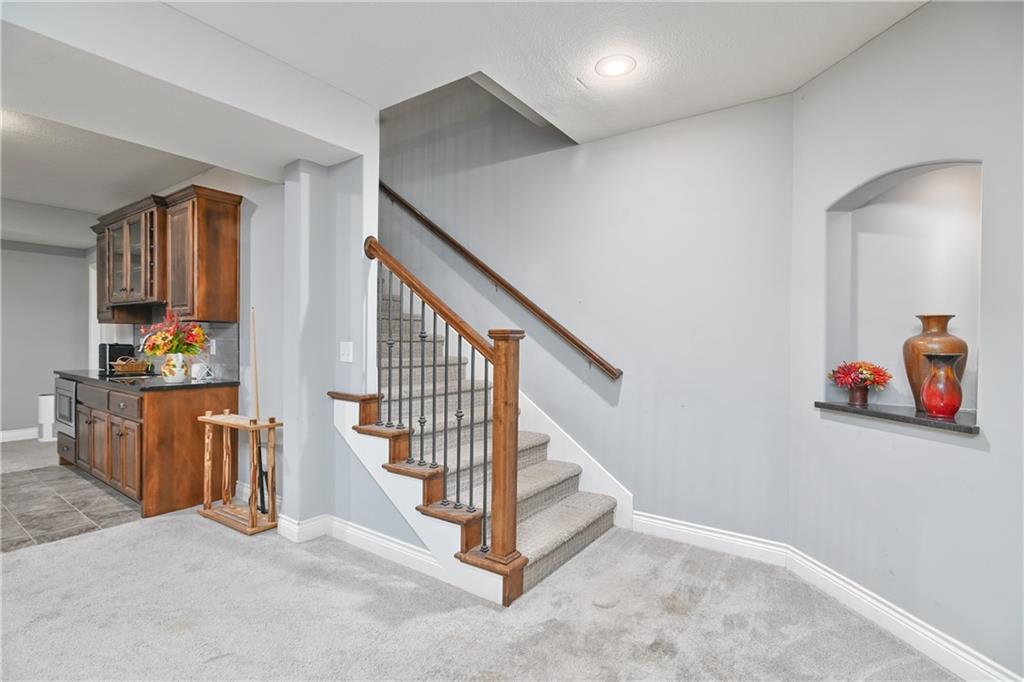 Spacious reverse floor plan situated on a beautiful corner lot just under a quarter acre. The expansive main level features wide open space with vaulted ceilings, hardwood floors, granite countertops, stainless steel appliances, and a gas fire place that anchors the living area. The main floor offers a lifestyle of ease and accessibility, with laundry, flexible den, study/home office/integrated sunroom, two bedrooms w/full bathroom, and a generous primary suite with private bath. The finished lower level expands the home’s entertaining space with a large family room, wet bar, and two additional bedrooms, w/full bathroom, and endless possibilities for reconfiguration, if that’s a desired end goal. Two dedicated storage rooms plus an oversized 3-car garage provide exceptional storage and functionality. The home has been well cared for and offers tremendous space and layout advantages, while allowing the new owner the opportunity to personalize cosmetic details to their own style over time. Residents enjoy four pools, two clubhouses, sport courts, and playgrounds, with convenient access to dining, shopping, and the nationally recognized University of Kansas Health System. Located in an amenity-rich neighborhood, with Prairie Creek Elementary and Woodland Springs Middle School. Multiple developers in the area with continued new construction throughout Olathe's south corridor, including the expanding Stonebridge communities - highlighting the area’s continued strong demand and rising property values.