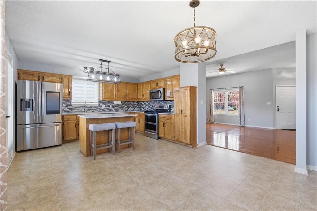 Welcome to this beautiful home in the desirable Highland Pointe subdivision! This very well-maintained property offers spacious living with an inviting floor plan perfect for both everyday living and entertaining. The main level features a bright living area that flows seamlessly into the kitchen and dining space, creating an open and comfortable atmosphere. The kitchen has pantry, granite, island, and refrigerator stays! Living room with fireplace! The home offers generously sized bedrooms, including a relaxing primary suite with a private bath with dual sinks, shower and ample closet space. Main level laundry room too! The finished walk out basement has family room, storage, and full bathroom. Step outside to enjoy the backyard with wrought iron fence, repainted deck, and sprinkler system, ideal for outdoor gatherings, gardening, or simply relaxing. Conveniently located with easy access to Lansing and Leavenworth amenities, shopping, dining, VA hospital, Base, and commuter routes, this home offers the perfect combination of comfort and location. Extra features include garage coating, new garage door, new disposal, new HVAC, new water heater, new paint, newer washer and dryer stay!