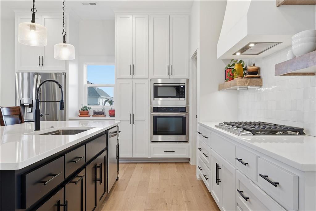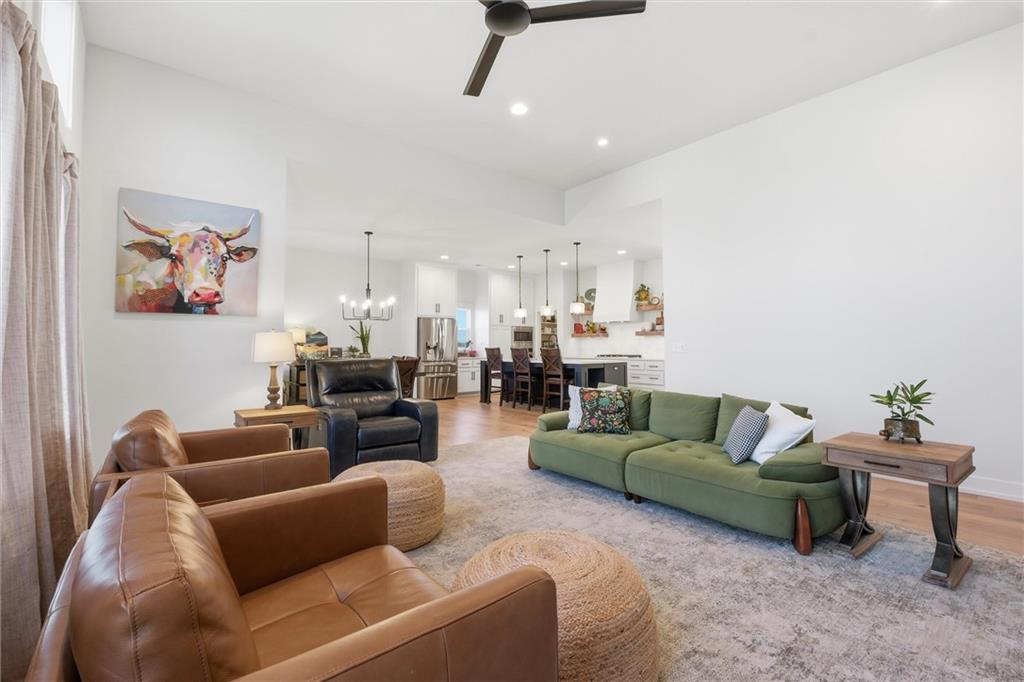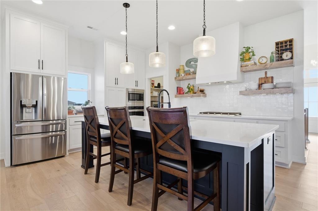 This home is better than new and move-in ready! Save time and money with this already upgraded home featuring an open floor plan for easy entertaining. The vaulted ceilings throughout the main living spaces make it feel spacious, and the hardwoods make it feel warm. Kitchen is beautiful with open shelving to showcase your decor or favorite dishes, a custom vent hood, a large island with seating, granite countertops. The walk-in pantry can fit all your bulk orders PLUS it has electrical to hide your countertop appliances. Primary bedroom is on the main floor with a massive closet that opens to the laundry room for the ultimate convenience. Dedicated office with closet on the main floor could make a great play room, sitting room or hobby room. Completely finished basement with 3 additional bedrooms and a family/rec room that walks out to the patio, great for enjoying an evening outside by the fire pit.